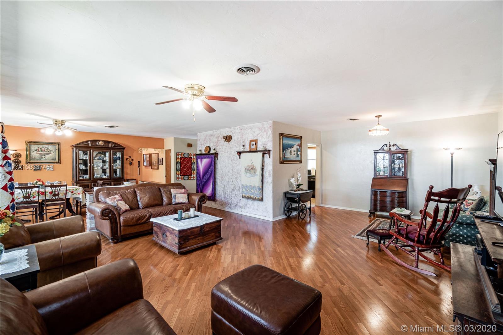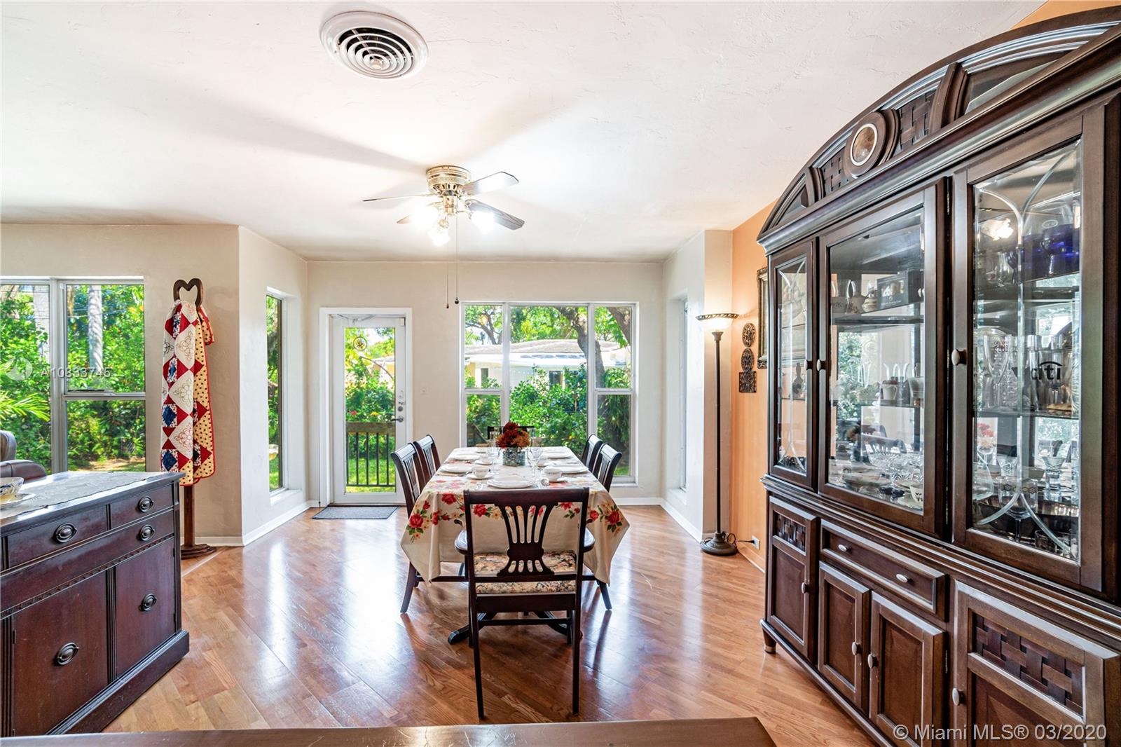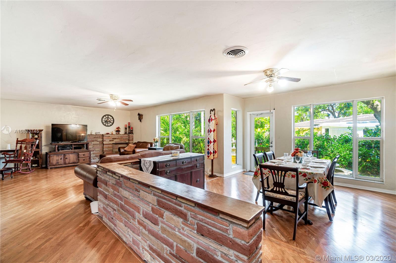 Click on our HD video for a Virtual tour: https://youtu.be/TcEPkSLbxT8 This spacious 1-story home has lots of impact windows for natural light and sits on a beautiful tree-lined street. Features include glistening hardwood floors throughout and open concept living areas with large picture windows to the private backyard. Updates include: newer 2002 wood kitchen cabinets, granite counters & backsplash, 2005 PVC plumbing on east side and replaced hall bathroom including Jacuzzi tub, 2006 replaced master bath and 2012 stamped concrete driveway. Master bedroom 14x13. Second bedroom 14x12. Third bedroom 11x12. Walking distance to Red Bird shopping area and biking distance to UM.