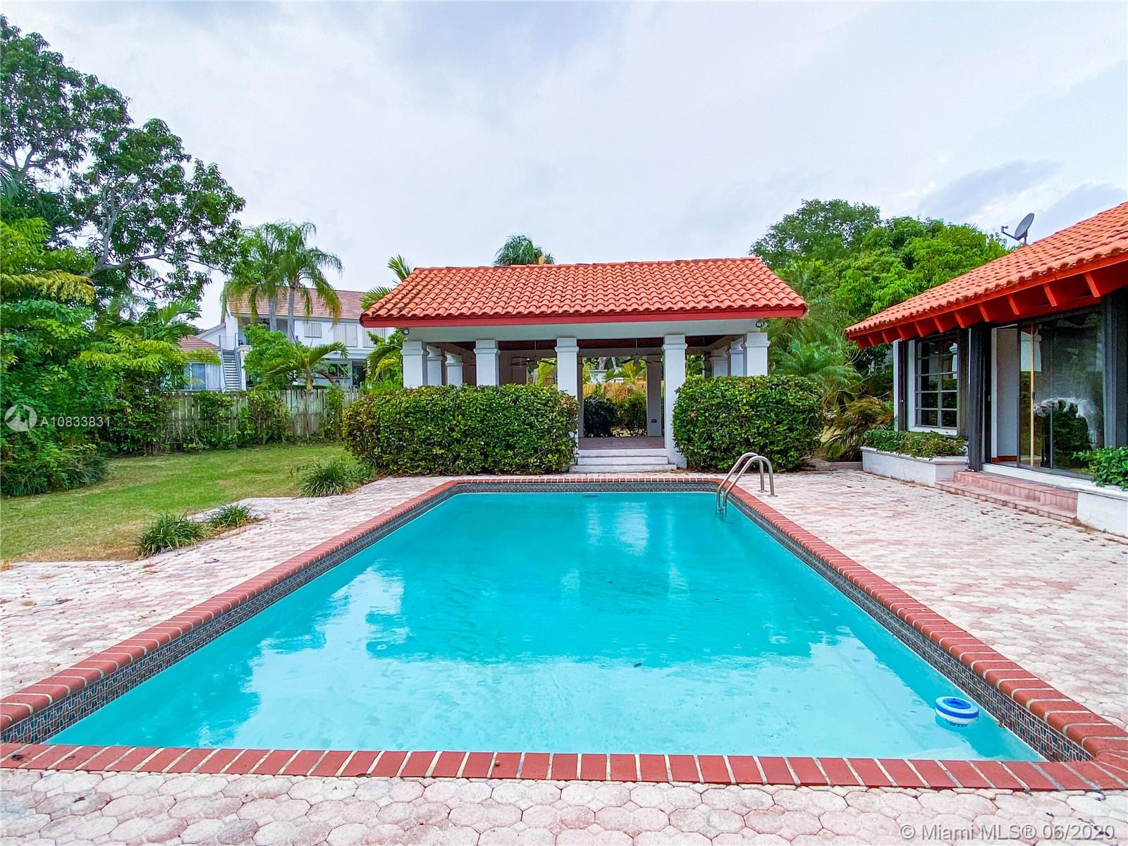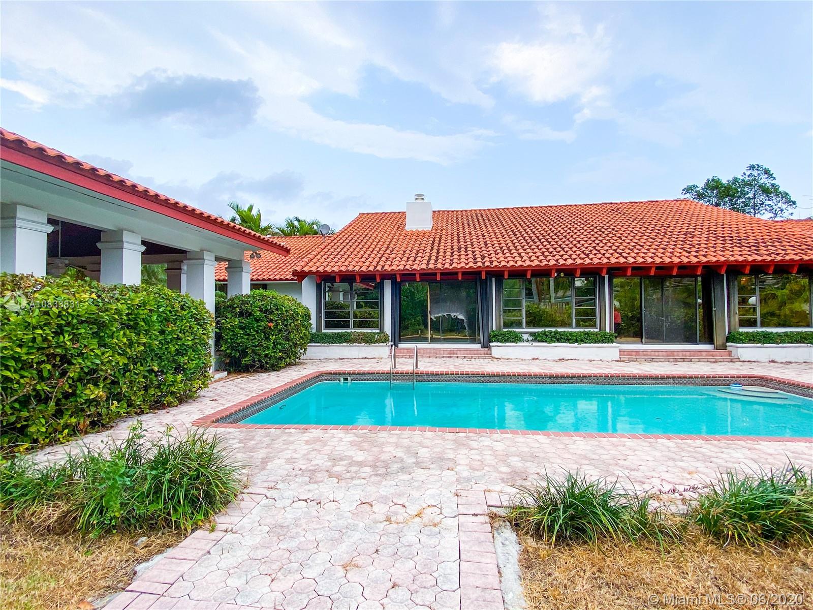 Prime Location in Pinecrest, within Gables by the Sea community! Extremely spacious, bright and elegant one-story home located in a very peaceful cul de sac. Features high wood vaulted ceilings, 2 large family rooms looking out to the pool and garden area. In-laws qtr. on one side for more privacy. This cozy home is sorrounded by landscape on a beautiful 18,455 adj. sq. ft. lot, has a built in shed next to the pool to enjoy special gatherings. Amazing home ready to decorate to your own taste. Owner is willing to hear all reasonable offers. Show-assist for Lbx combo.