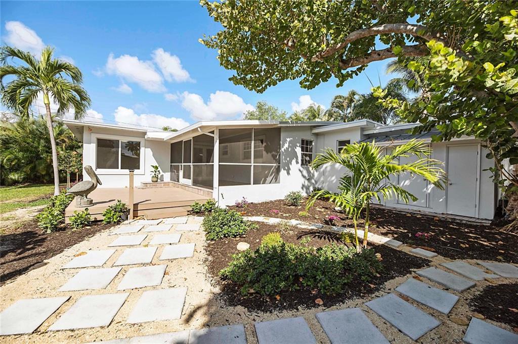 What a wonderful opportunity to own this renovated tropical oasis. The newly installed metal standing seam roof and lush landscaping perfectly set the scene.Remodeled with SS appliances and impact windows and doors painted in/out, wood,marble and tile floors work to create the total picture. You are within one mile of excellent restaurants as well as great food and boutique shopping. Separate lockable en suite bedroom /outside door is perfect for guests. A green house style planting area off the kitchen and a south facing back yard is off the huge screened patio and deck and so many lovely garden areas wherever you look. Oasis(reuse water)property is inexpensive and environmentally sound.Large lot 9,350 s.f. with ample side and rear yards. You feel and smell the Ocean in your back yard