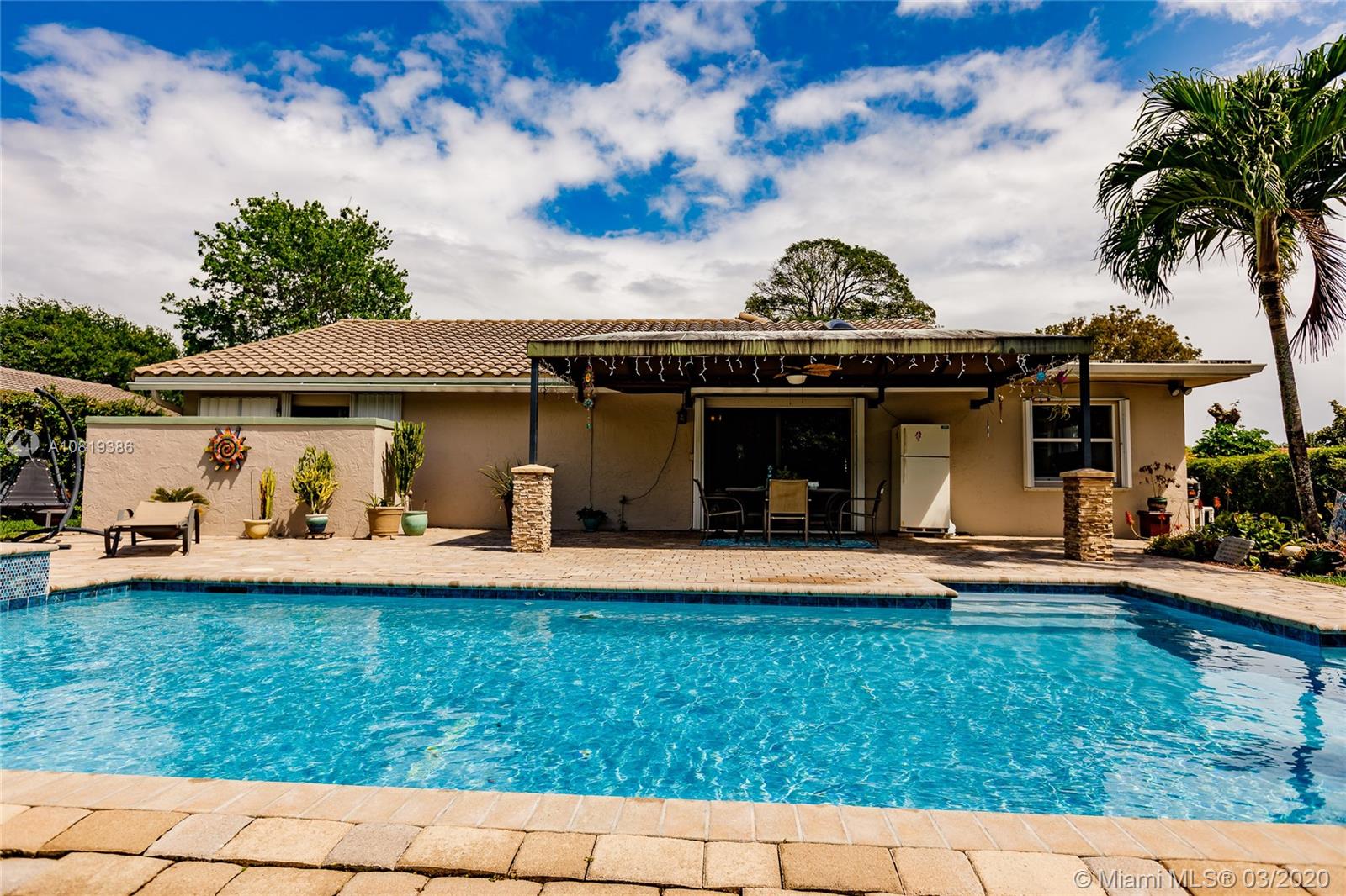 Lushly landscaped 3-bedroom + den, 2-car garage, and 2-bathroom home with pool and jacuzzi! Open split-bedroom layout with vaulted ceilings, crown molding, base boards, updated kitchen with stainless steel appliances and granite countertops. Backyard is completely fenced on an oversized lot that transports you to your own tropical oasis. Beautifully paved patio, and driveway. Located only minutes from everything Coral Springs has to offer and the Sawgrass Expressway. This is the home you have been looking for! Sale is subject to probate court approval.