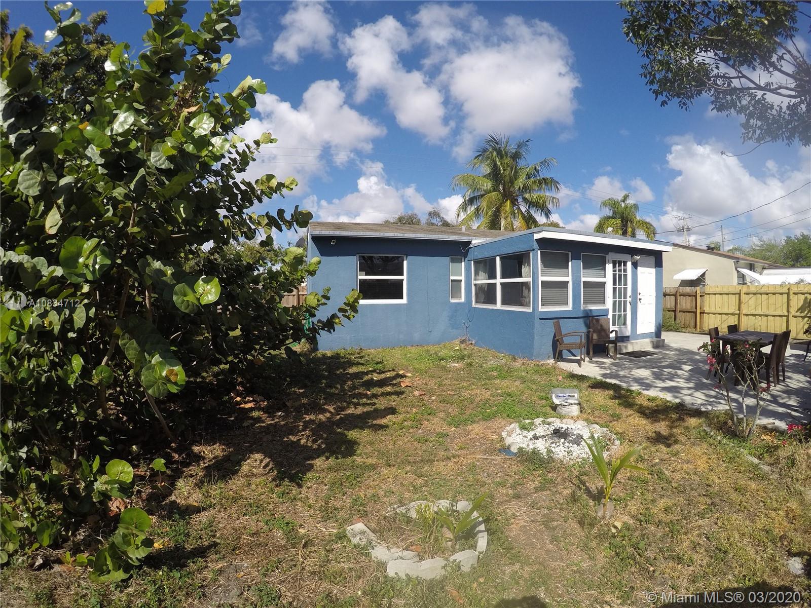 Don't miss this absolutely adorable 2 bed 1 bath single family home located in Hollywood East of 95. All tile & wood flooring. Circular driveway & carport for parking. Open kitchen layout & solid slab counter tops. Bonus room that can be us ed as a 3rd bedroom or office. Very large backyard perfect for entertaining, room for a pool. Close to downtown Hollywood, beaches, restaurants, entertainment, shopping and I95. No HOA.