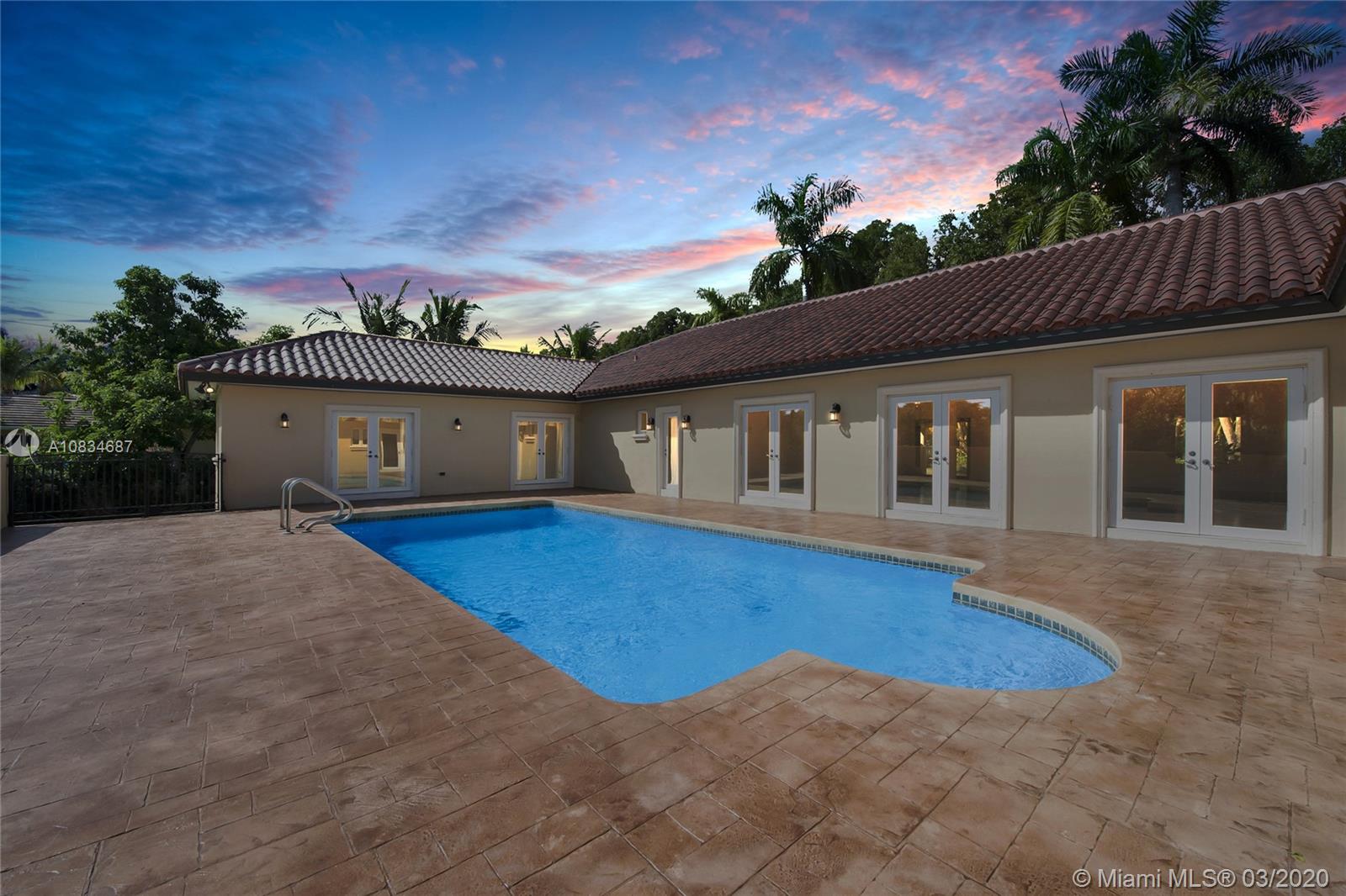 Enchanting Euro-style residence located on historic Old Cutler Rd in the Gables-by-the Sea area. Walled + gated for privacy, the home offers a split BR plan and expansive living areas. Sited on a 37,000 SF lot, it offers access from the rear road in addition to the main entry on Old Cutler. The measured openness of the interior and the significant use of windows/doors (impact) blend inside and outside living. Newly expanded/added is the 5th BR with en-suite bath + another 2-car garage. Access to this newly added area is via the heavenly loggia connecting both areas of the estate. Schools + parks are all a short distance away! No flood zone! Virtual walkthrough now available! https://my.matterport.com/show/?m=a6oUTHqiumm&brand=0