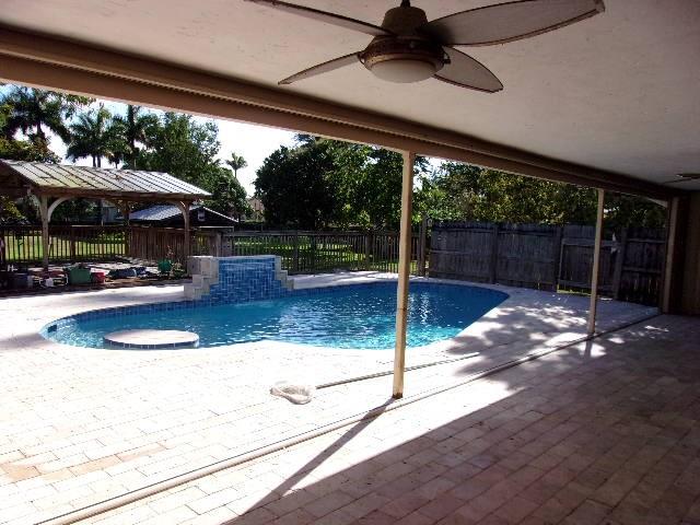 SPACIOUS AND UPDATED DAVIE HOME WITH A POOL AND POND WITH FOUNTAIN ON AN ACRE LOT. LOTS OF TREES INCLUDING 3 MANGO, AVOCADO, JAMAICAN JUNE PLUM, MAMEY AND ROYAL PALMS. QUIET CUL-DE-SAC STREET FEELS LIKE YOU ARE IN THE COUNTRY, YET EASY ACCESS TO TOP SCHOOLS, SHOPPING, I-75, 595 AND SAWGRASS EXPRESSWAYS. NO HOME OWNERS ASSOCIATION. BRING THE HORSES, BOAT & RV (SHED HAS 50 & 30 AMP PLUG) GRANITE KITCHEN AND WOOD CABINETRY, SS APPLIANCES INCLUDING HUGE FULL REFRIGERATOR AND SEPARATE FULL FREEZER, TILE FLOORS THROUGHOUT & CROWN MOLDING. TILE ROOF REPLACED IN 2008. LARGE ROOFED PATIO AND POOL AREA. ACCORDIAN SHUTTERS, DEEP WELL, 2 CAR GARAGE. LARGE CONCRETE DRIVEWAY. SALT SYSTEM POOL WITH WATERFALL. 3 LARGE BEDROOMS PLUS A SMALL OFFICE. 2 UPDATED BATHROOMS WHICH OPEN TO POOL & PATIO.