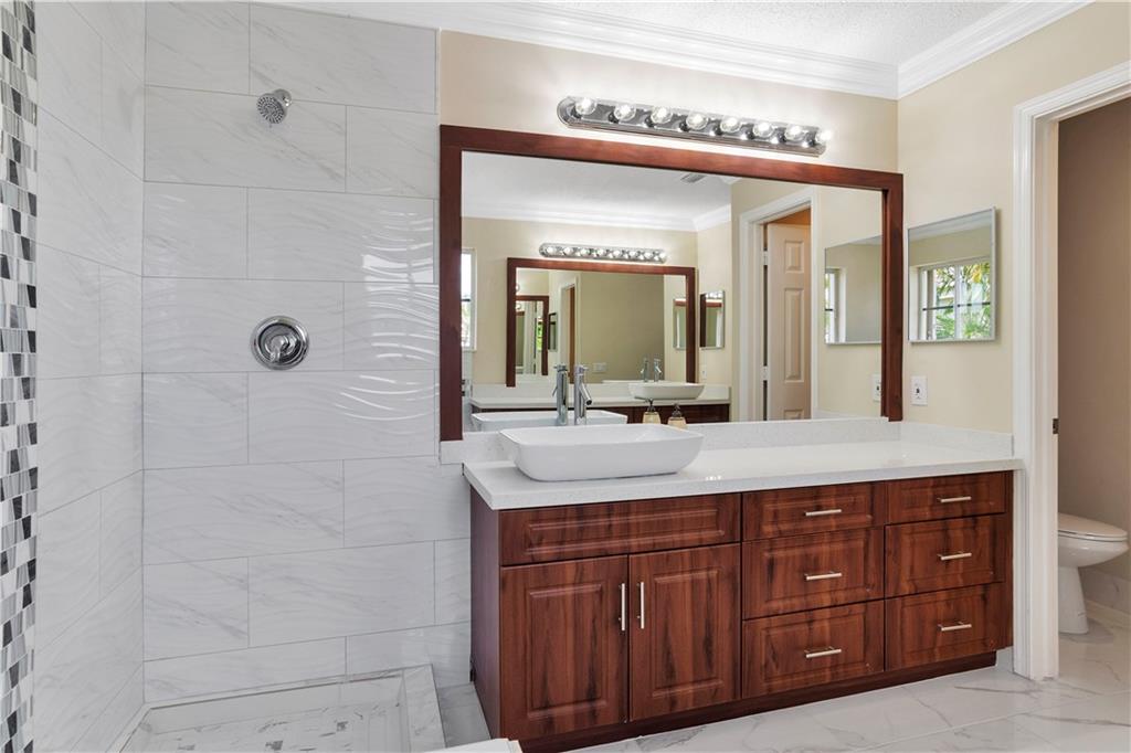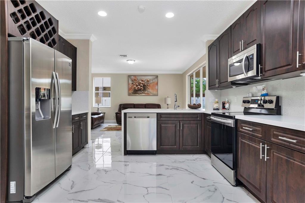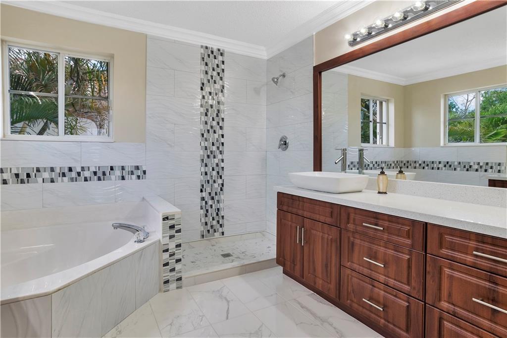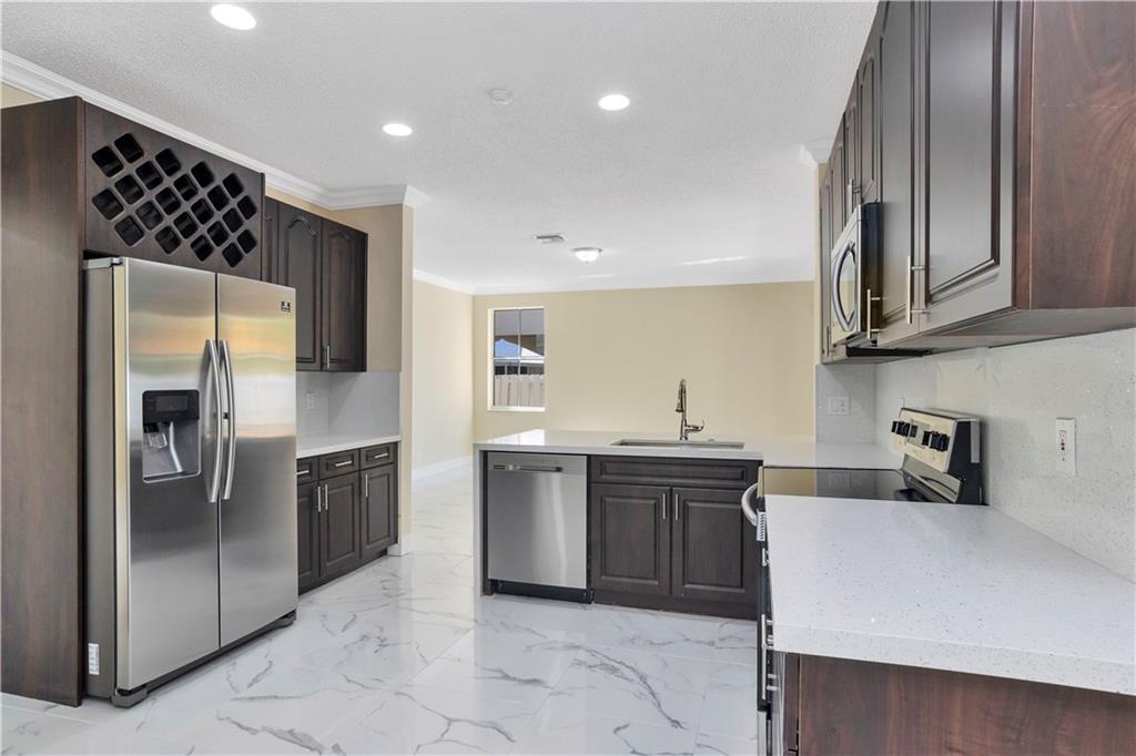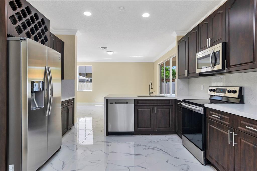 ELEGANTLY RENOVATED HOME !! 5 BEDROOMS , 3 1/2 BATHROOMS , UPGRADED POOL WITH EXTRA LARGE PATIO .. BEAUTIFUL HOME , BRAND NEW KITCHEN , QUARTZ TOPS AND NEW APPLIANCES .. ALL NEW BATHROOMS .. NEW WATER HEATHER ... UPGRADED TILE ENTIRE FLOOR ... NEW PAINT INSIDE AND OUTSIDE ... NEW LIGHTING FIXTURES ,, NEWER CENTRAL A/C UNIT ... HIGH-END FINISHES !! MOVE-IN READY CONDITION !! FANTASTIC HOME IN A+NEIGHBORHOOD !!! NEW LANDSCAPING ON EXTRA LARGE LOT !!! TWO CAR GARAGES WITH UPGRADED PAINTED FLOORS AND NEW GARAGE DOORS !! ALL NEW PLUMBING FIXTURES !! NOTE: DRIVE BY TO SEE THE HOUSE AND THE COMMUNITY.