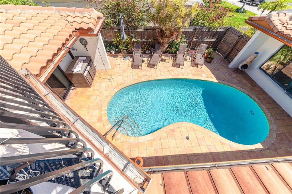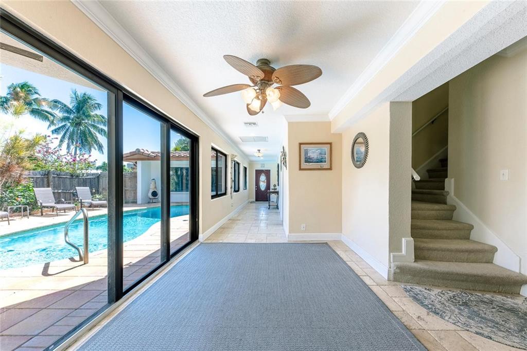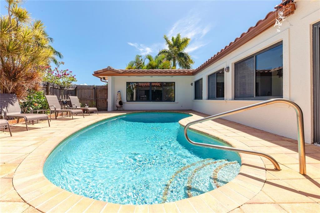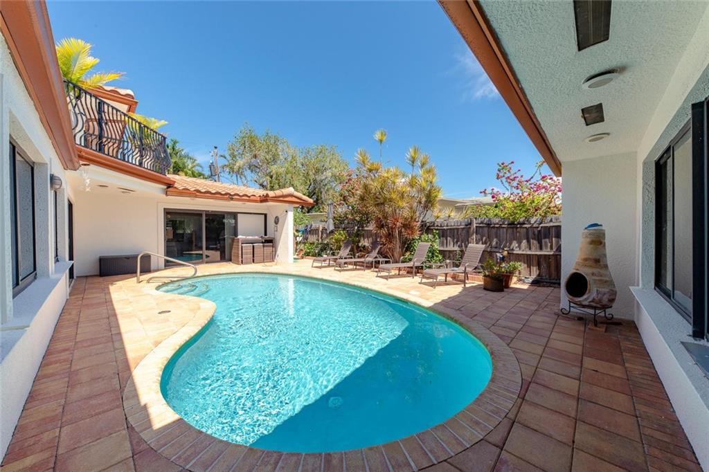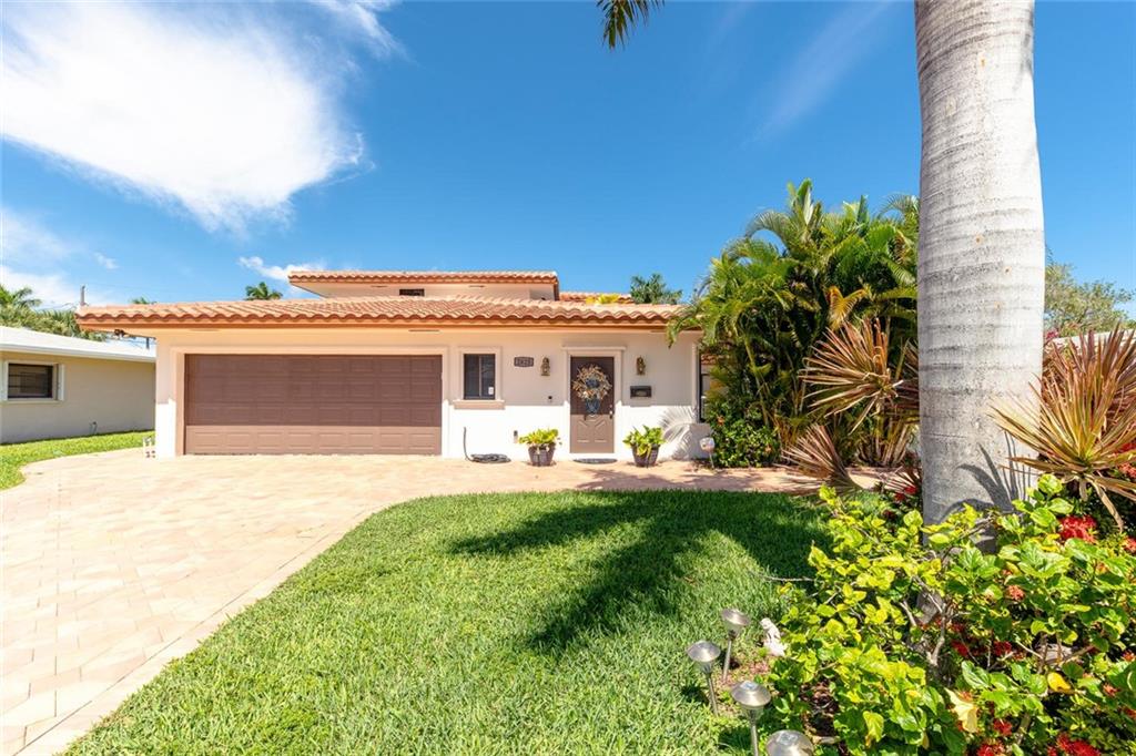 Spectacular large updated courtyard style home, steps to the beach, dining&entertainment. 1 Mile from the golf course&dry boat dock storage! Directly in the middle of the CRA redevelopment. Barrel tile roof, AC's and new paver driveway only 1 year old. Travertine flooring, Smart designed updated kitchen with bar, wine cooler, stainless appliances& breakfast bar open set up. Impact windows and door T/O, interior laundry room,2 CG, 4 full baths. Updated electrical, updated PVC plumbing. 2nd story addition completed and many updates in 2006. Excellent master suite with southern facing balcony overlooking the saltwater pool. One full suite 2 baths downstairs.The home has a very solid & rich feel.When you enter, you have a grand entryway that is bright & exciting surrounded by the pool.