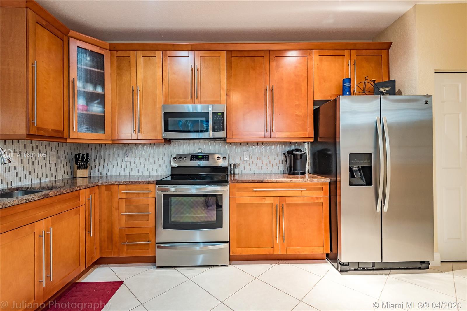 VACANT AND READY TO SHOW TODAY! MOVE IN READY! FULLY UPGRADED THROUGHOUT! YOU WILL NOT FIND A BETTER 4/2.5 UNIT IN ALL OF WESTON!ONLY A SHORT WALK TO ALL A+SCHOOLS,LIBRARY,CITY PARK & SPORTS COMPLEX! THE KITCHEN FEATURES: SOLID,3cm GRANITE COUNTERS,DESIGNER GLASS BACK SPLASH,SOLID WOOD,SHAKER STYLE CABINETS AND ALL SS KENMORE ELITE APPLS.W/EXT.WARRANTY.SOLID CHERRY WOOD FLOORS IN ALL BEDROOMS AND ON THE STAIRS.LARGE MASTER SUITE HAS MASTER BATH THAT HAS BEEN COMPLETELY REMODELED INTO A RESORT STYLE BATH w/RIVER STONE,TWO"RAIN SHOWER"WATER FEATURES & DUAL SINKS WITH QUARTZ VANITY TOP. A/C & WTR. HEATER NEW IN 2017,FULL ACCORDION SHUTTERS.WIDE PATIO OVERLOOKS THE PRIVATE BACKYARD.FULLY MAINTAINED COMPLEX HAS POOL,PLAYGROUND & SECURITY PATROL.ONLY 8 MINUTES TO CLEVELAND CLINIC,PUBLIX & MORE !