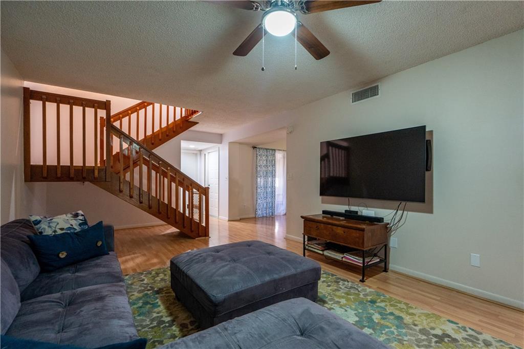 Rarely available! 3 Bedroom 2.5 bath townhouse WITH 1 CAR GARAGE, driveway, and 2 ADDITIONAL assigned parking spots. Enter the property through your own private courtyard! First floor features family room, living room, formal dining room, half bath, and expansive screened in patio with beautiful views of water and vast green space. Upstairs there are 3 bedrooms, 2 full baths, and a separate laundry room. Large master suite with 2 spacious closets and a balcony to enjoy the gorgeous views. Fabulous community amenities! Community pool, BBQ area, tennis/basketball courts, and brand new child area being constructed (see CAD photos). TOP-RATED SCHOOLS.