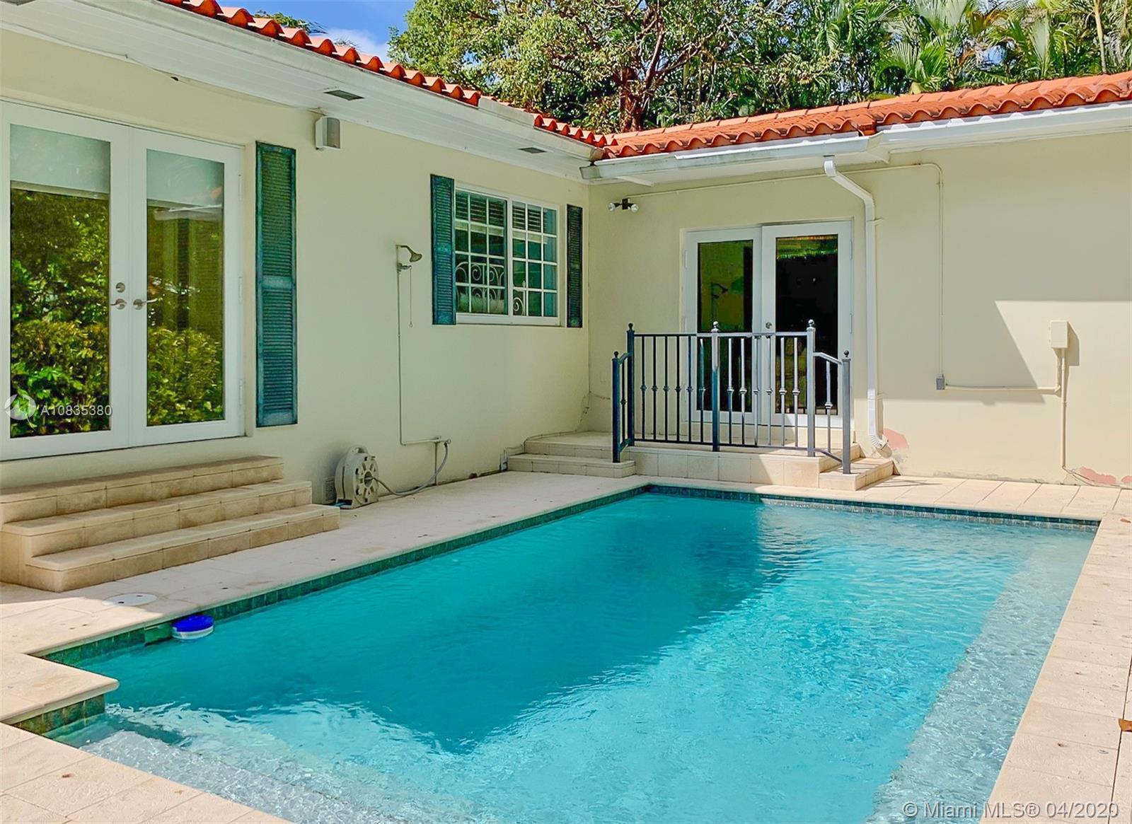 New Listing in South Gables 3 blocks north of Hardee on a quiet street that is only 2 blocks long west of LeJeune and east of San Vicente. This spacious three-bedroom, two-bath home sits on a 7500' lot and has 2244 adj. sq. ft. Covered porch to LR with a dining room beyond. Kitchen to the left and all three bedrooms to the right. Behind the dining room is an expansive Family room that has French doors to the sparkling open pool and patio. There is also a small office through at the rear. The first bedroom off the hall is actually two rooms combined for one and could be separated. The master is large with two closets, bath, and French doors out to the pool. Impact windows, hardwood/tile floors, newer roof, circular drive, garage. Flexible closing can be accommodated. SELLER IS FIRM.