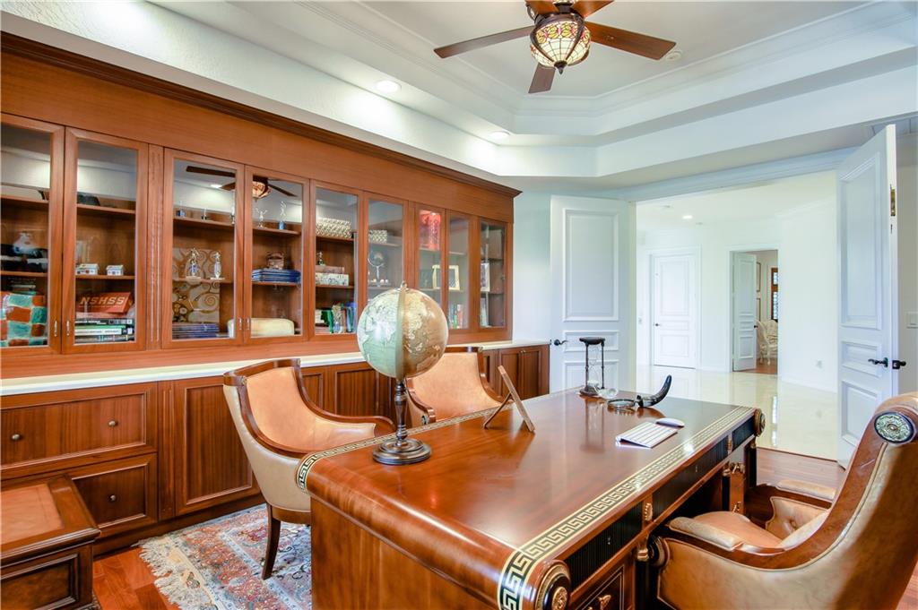 Experience elegance and live in lavish luxury at Windmill Ranch Estates, a private equestrian community. At 1.42 acres and over 11,500 SF, this 7 bedroom 7.5 bathroom home offers formal opulent style and casual relaxing ambiance. Built in 2007, this property features a chef's island kitchen perfect for entertaining that opens up to living and dining areas plus a walk in refrigerated wine room with glass walls, separate cocktail bar and movie theater. Discover soaring ceilings upon entry leading your eyes upward to second story hallway balcony and ahead toward lavish formal living area with towering windows overlooking the pool area. Entertain your guests outside by your resort style pool. Work remotely from your spacious executive office. Host guests in VIP guest suite. XL 3 car garage.