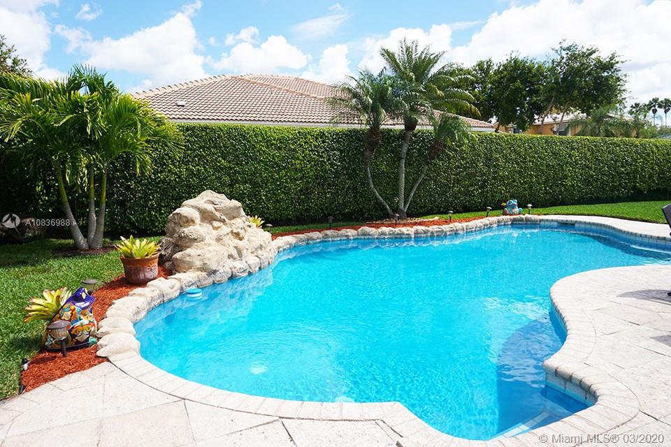 Beautiful 4 bedroom, 2 bath pool home on an oversized corner lot. Enjoy the stunning open design floor plan with many upgrades. Open kitchen and family room, tile floors throughout living, family and kitchen areas, bathrooms renovated with quartz countertops and tile, large master suite with 2 walk in closets and separate custom shower and tub, double vanity sinks, closet built-ins, newly painted, nest AC control, epoxy garage floor, tankless water heater and so much more. Laminate wood in 2 bedrooms and carpet in master and 4th bedroom. Enjoy entertaining in your pool with a relaxing waterfall, grill from your covered patio, and have fun with lots of play space around your home. Conveniently located in Parkwood Kensington near transportation, beaches, shopping and schools. Must see.