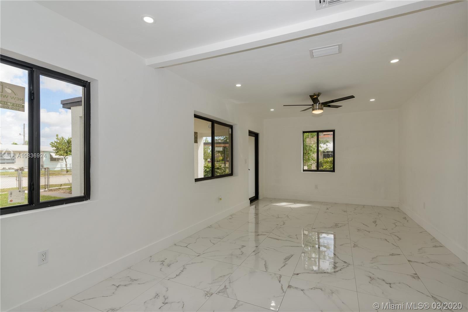 This is the perfect house for you. The house for you to call Home. Totally and completely renovated with permits and the Hialeah Re-Occupancy Certificate on hand. House seats on a 8,160 Sq.Ft lot with enough room for cars, boats and RVs and a pool. This home offers you: new roof(less than a month old), new impact windows and doors, new porcelain floors with modern wood baseboards throughout. New bathrooms with modern fixtures, new 3 Ton A/C unit, new solid wood kitchen cabinets with beautiful quartz countertops and backsplash and brand new stainless steel appliances, new recessed LED lighting throughout and new ceiling fans.House is freshly painted in and out with new exterior stucco. Backyard has multiple mango, avocado, mamey, star fruit, and coconut trees. Larger than Tax Roll.