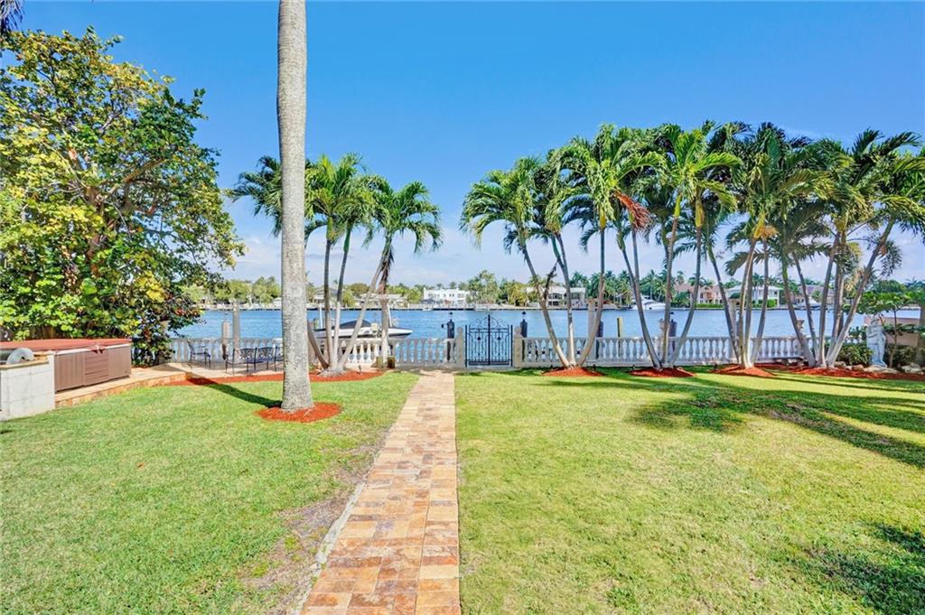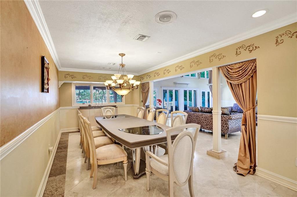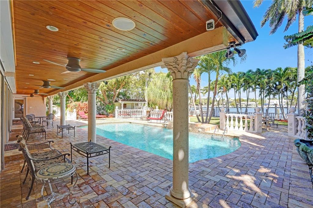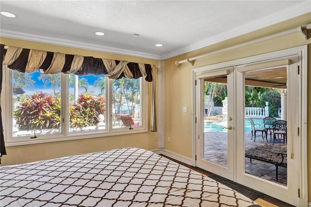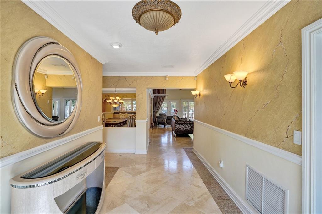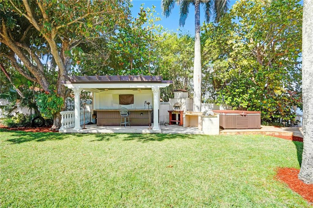 Located on a quiet tree lined street in Hollywood Lakes, elegant 1 story custom estate surrounded by tropical landscaping. Private 1/2+ acre corner property, 100’ water frontage, 75’ deep water dock, w/boat lift a boaters paradise, no fixed bridges. View 360° Virtual Home Walkthrough Tour, just copy paste: https://bit.ly/2vHSX9c or view Drone View: https://bit.ly/2xdQqUu Electric/accordion hurricane shutters, newer AC. Enjoy the magnificent water views from the Loggia surrounding the pool. Outdoor fountains, wet bar, Pizza oven, lounging areas evoke a feeling of resort style living at its best. Living room has a custom bar w/etched glass paintings, Kitchen has 6 Burner commercial grade gas stove, granite counter tops. Large master suite has hard wood floors, Master bath has steam shower