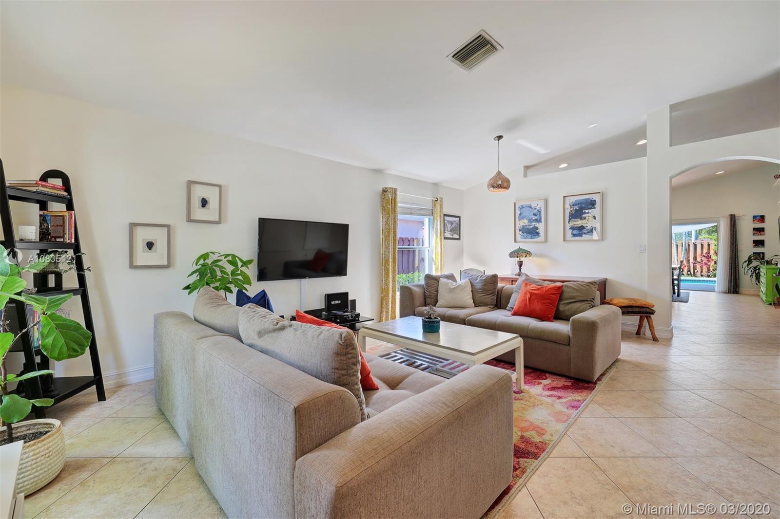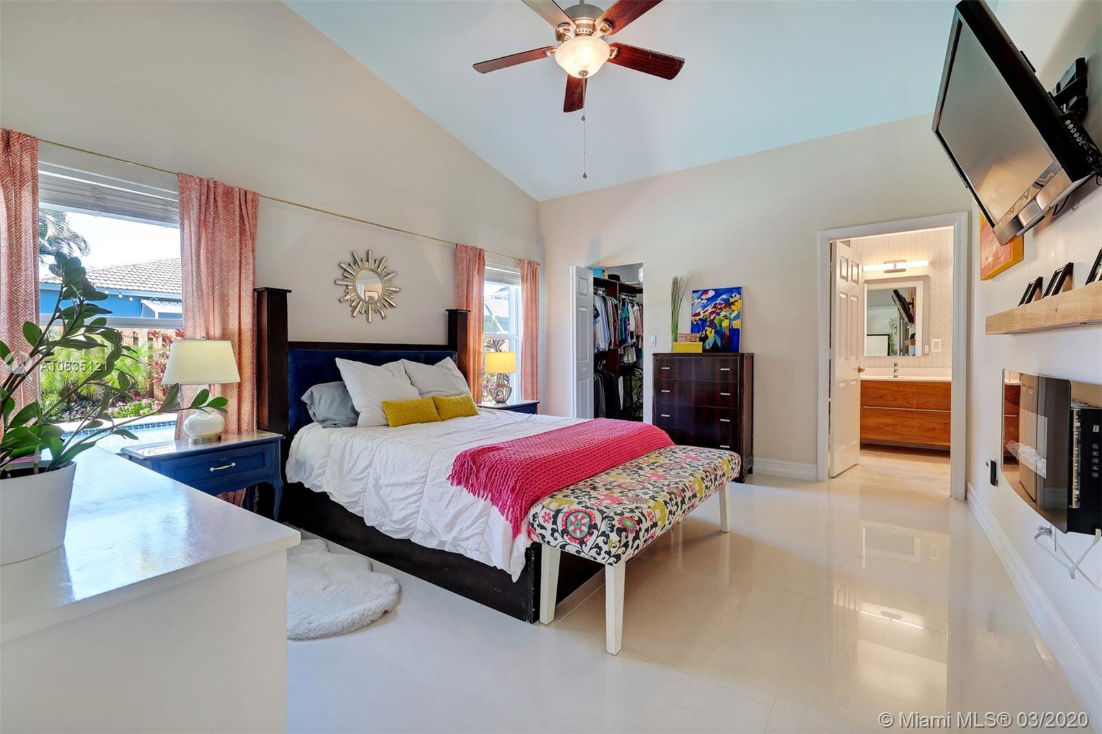 Gorgeous pool home in Pembroke Falls, vaulted ceilings, open floor plan, plenty of natural light, wide-open kitchen overlooking a large Family Room and the pool area. Gas stove, Split bedroom plan, Great size Master bedroom with vaulted ceilings and newer Porcelain flooring, walk-in closet, beautifully remodeled master bath, covered patio, a sparkling pool, and a private backyard. Accordion shutters throughout.
