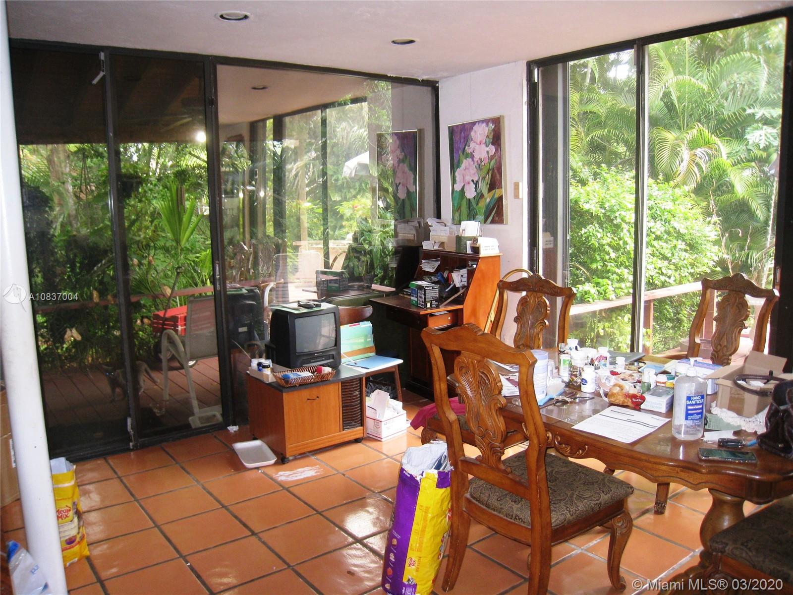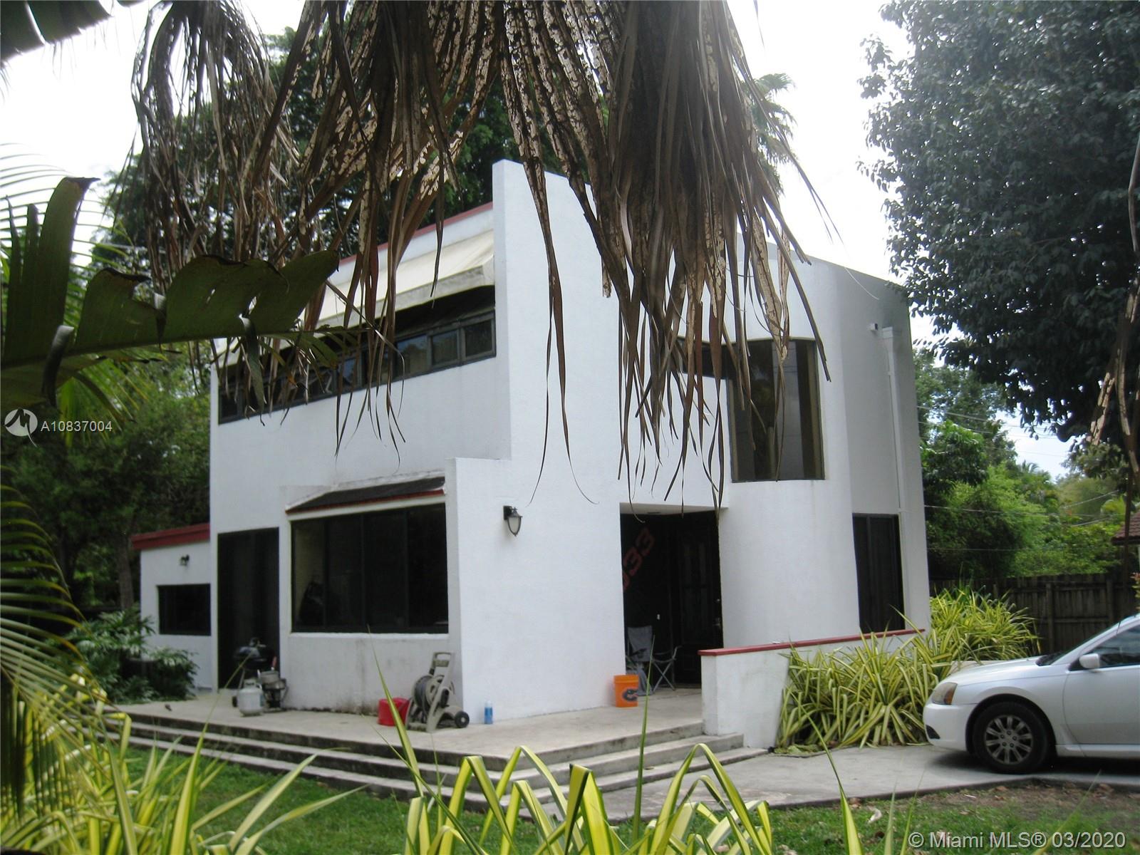 Contemporary in a grovey tropical setting * "Handyman Special" **Zoning: 5700/DUPLEXES** * Estate Sale*2 story gated home in the Village of Pinecrest * Windows & sliding glass doors everywhere allowing for natural lighting *2 full bedrooms & 2 full bathrooms upstairs * Circular stairs leading to the rooftop * Downstairs has a sunken living room with parquet wood floors separated from the dining room by a large built-in fish tank * Downstairs den, office or 3rd bedroom, whatever you like * half bath off the foyer * Kitchen has had some updates * Open wood deck off back of house and a covered patio deck off the side of the house * House is generator ready * Needs a new roof and a lot of work! NOTE: White house in photos is next door house to south: "same model home" aka: sister house.