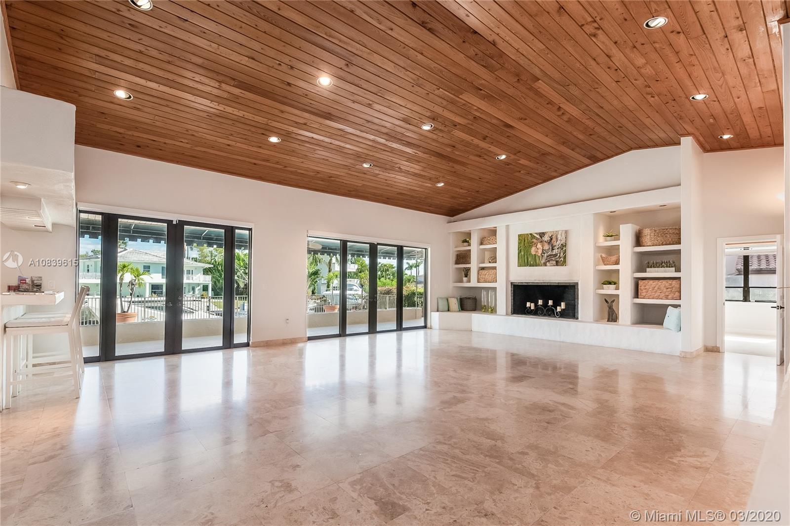 This High elevation Waterfront home is located in one of Coral Gables Luxury Communities-Gables by the Sea. Minutes to the Bay- relax on your boat with use of your private 100 dock. This modern feeling home boast 6 bedrms and 4.5 Baths. Vaulted wood ceilings accent the huge family and living room with fireplace. The master bedroom ensuite is 1000 sq ft on a private floor with floor to ceiling windows for that water and Bay view. Sitting area and two walk in closets compliment this large area. Front/backdoors as well as back windows downstairs are impact glass. Pool area is multi-level and this outside area lends itself well to parties on the water. Make everyday you live special in this home. Priced to sell right away.