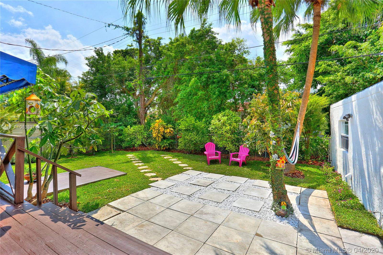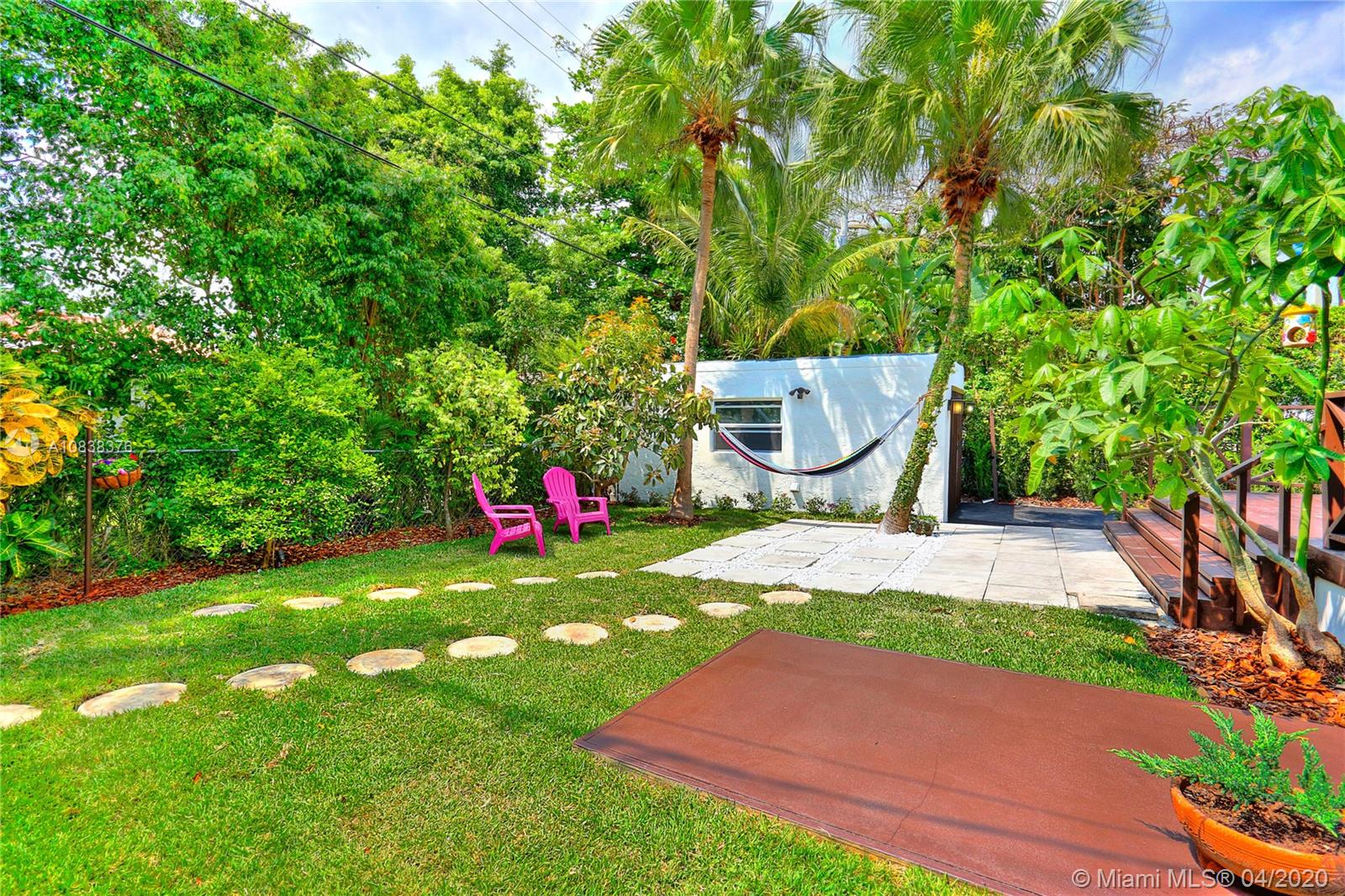 A charming 1923 Coral Gables Old-Spanish style home completely updated with 2 bed, 1 bath, a converted detached garage situated on a tropical landscape will fascinate you upon arrival. With a long driveway and carport, this home is filled with lots of windows with attractive features such as an open-concept kitchen/living area, a working original fireplace & an ample freshly painted wood deck great for relaxing and entertaining. New features: A/C, PVC plumbing, tankless water heater and washer/dryer. The eat-in kitchen has solid wood cabinetry with granite countertops and s/s appliances, updated bathroom with shower, custom built-in closets, large porcelain interior floors. Spacious master bedroom with access to the deck. Enjoy living close to lots of what Coral Gables has to offer.