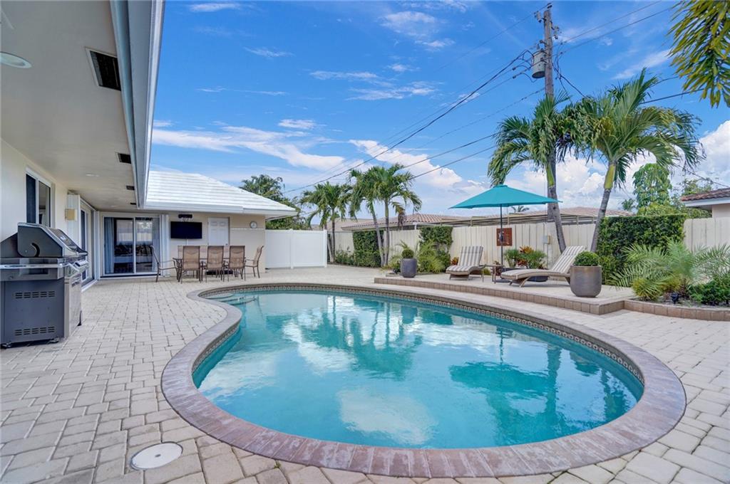 Meticulously maintained 3 Bedroom/2 Bath Pool Home tucked away in the quietest section of Imperial Point. New paver driveway sets the tone as you approach the entrance. Recently updated porcelain tile floors flow thru the entire house. Beautifully updated Bathrooms. Spectacular newer kitchen overlooks the living area and heated pool. Enjoy the spacious outdoor living area around the pool including outdoor shower. 2-Car Garage boasts new polyurethane floor and newer front-loading washer and dryer.