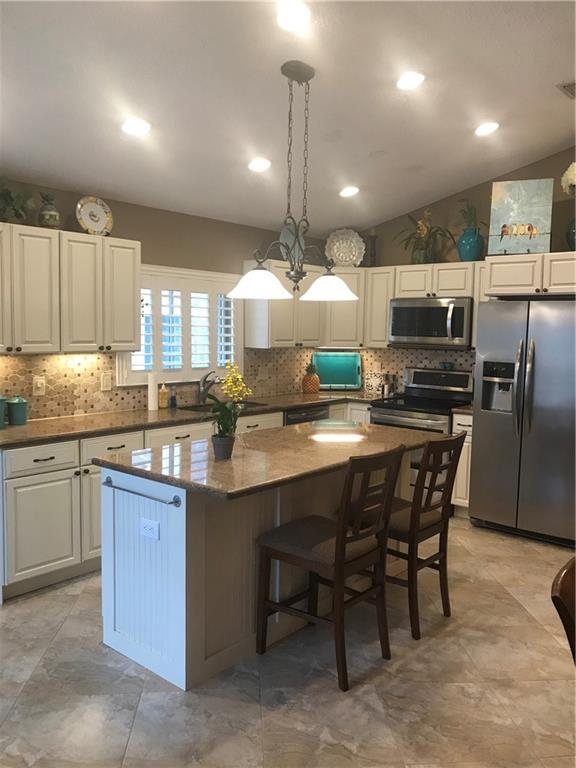 *PERFECTION*SEEING IS BELIEVING THIS BEAUTIFULLY UPDATED ONE STORY HOME.ALL TILE,PLANTATION SHUTTERS,OPEN KITCHEN WITH EXTENDED CABINETRY,STAINLESS APPLIANCES,GRANITE COUNTERS.FRESHLY PAINTED WITH NEUTRAL COLORS.VOLUME CEILINGS.DOUBLE DOORS OPEN UP TO LARGE MASTER BEDROOM,WALK-IN CLOSET,LARGE UPDATED BATH WITH SEPARATE TUB AND SHOWER,DOUBLE SINKS.3 WAY SPLIT BEDROOMS.SCREENED PATIO WITH BACKYARD FENCING.ALL WINDOWS AND DOOR HAVE HURRICANE COVERING PLUS NEW GARAGE DOOR.$4,000 IN GARAGE SHELVING UPGRADES.A/C 2015.TILE ROOF WITH GUTTER SYSTEM/PARTIAL LEAF FILTER SYSTEM.SEPARATE LAUNDRY ROOM OFF 2 CAR GARAGE.MAINTENANCE INCLUDES LAWN-FRONT AND BACK, EXPANDED CABLE WITH HBO (2 TV'S),COMMON AREA,POOL.WALK TO NEIGHBORHOOD PARK,GROCERY,RESTAURANTS.