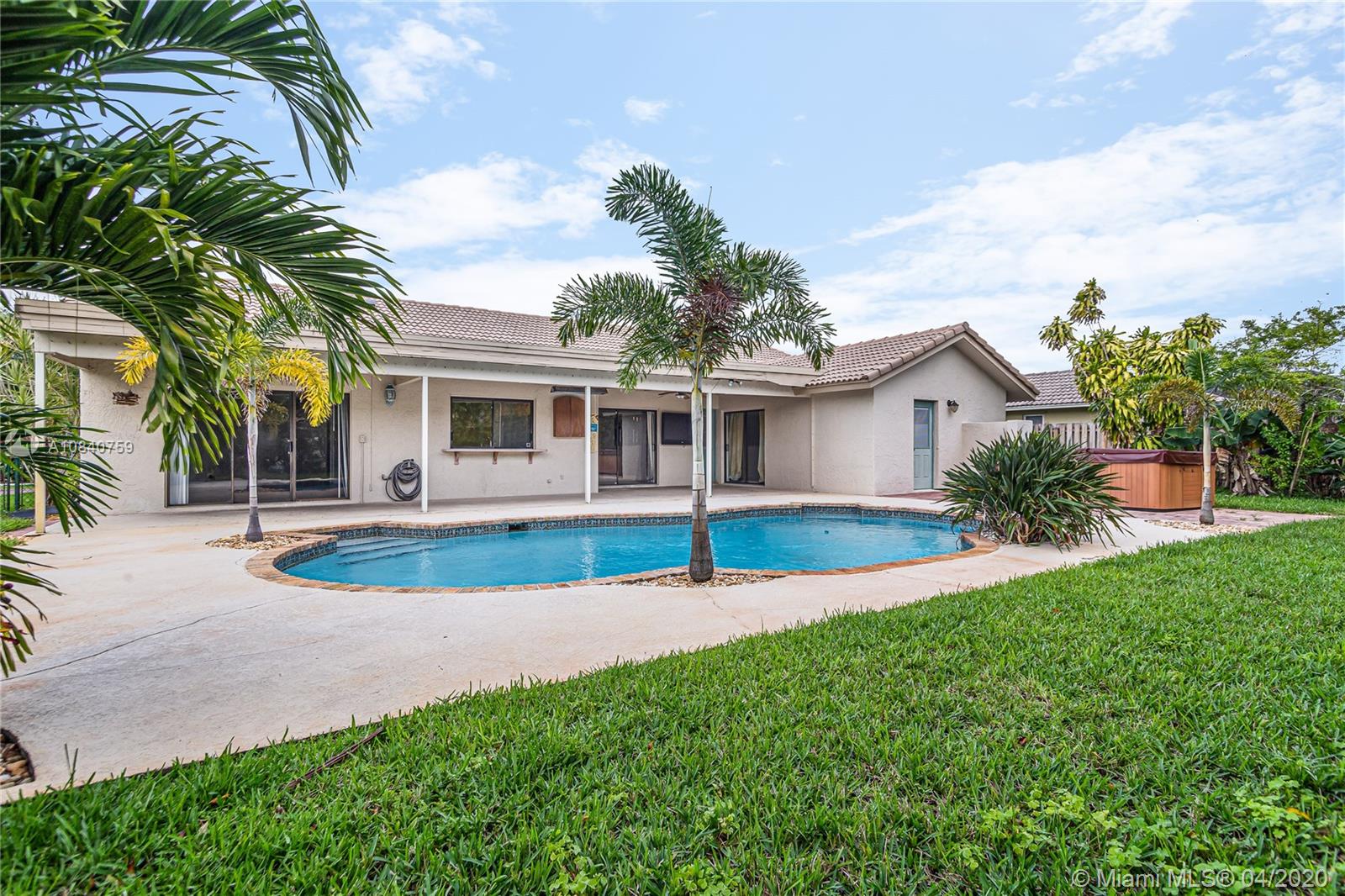 NO HOA!! TROPICAL POOL HOME ON A 10K+ SQ' LOT. NEW DIAMOND BRITE FINISH IN POOL, SEPERATE SPA/HOT TUB. 4 BEDROOMS, 2 FULL BATHS/BOTH ARE CABANA BATHS, PLUS GUEST BATH, 2 CAR GARAGE, NEW STAINLESS STEEL APPLIANCES IN KITCHEN, NEW WOOD FLOORS IN LIVING AND FAMILY ROOM, NEWER TILE IN FOYER ENTRANCE, KITCHEN, DINING, BATHS, AND HALLWAYS, NEW CARPET IN BEDROOMS, KNOCKDOWN TEXTURE ON CEILINGS, NEWER 5" BASEBOARDS, NEWER RECESSED LIGHTING HUGE INSIDE LAUNDRY ROOM WITH TONS OF EXTRA STORAGE, EAT-IN-KITCHEN, VAULTED CEILINGS, LANDSCAPED & FENCED YARD, HURRICANE SHUTTERS.