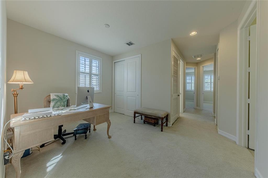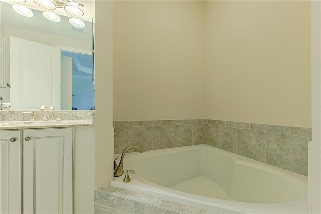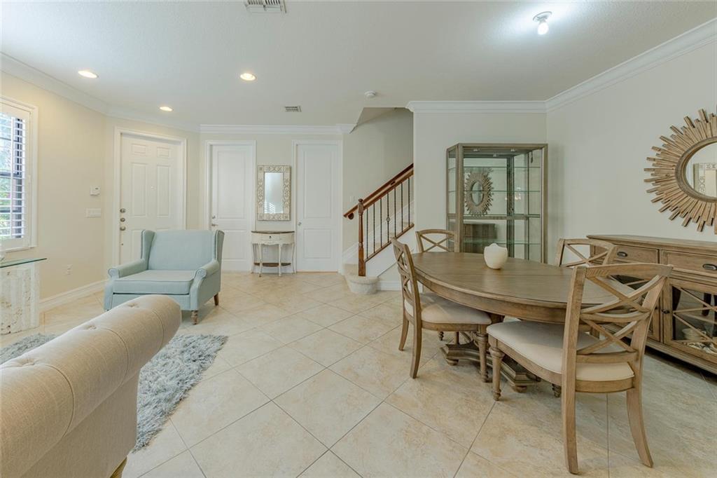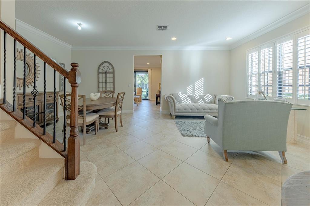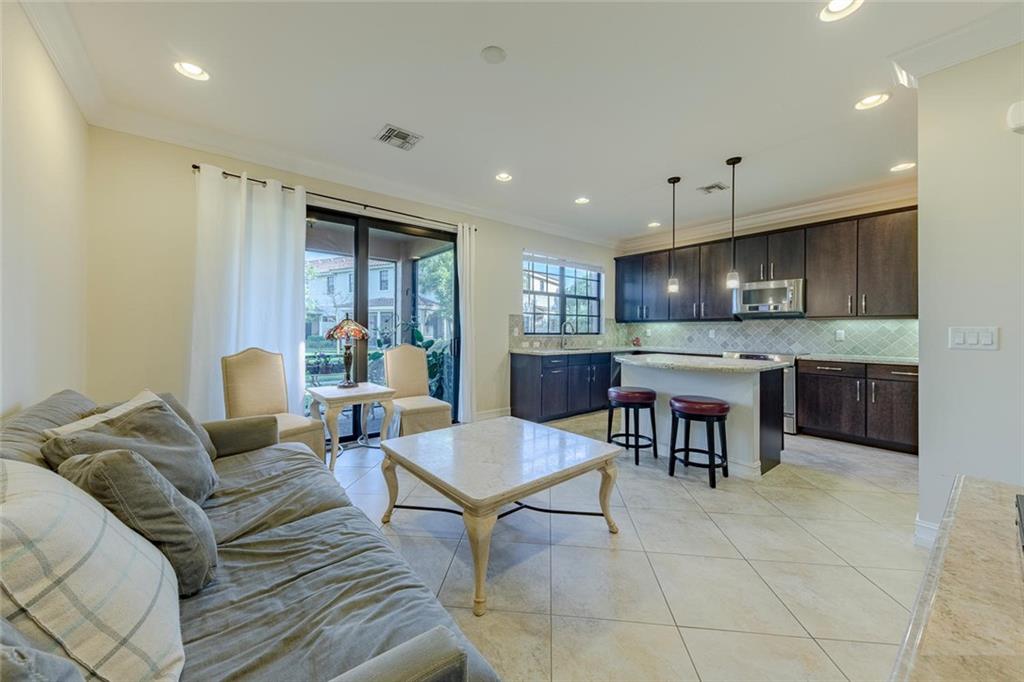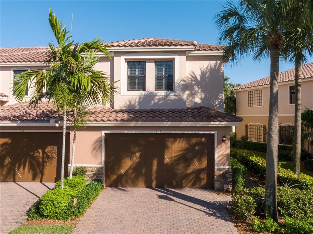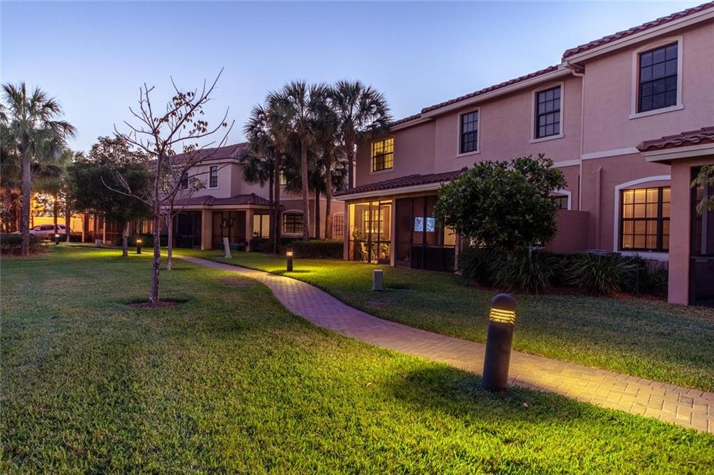 Exceptional corner end townhome in desirable gated community Riverwalk at Lago Mar. This large 3 bedroom + den, 2 1/2 bath has all the bells and whistles and won't last! Many features include crown molding through-out, hi-hat lighting, hurricane impact windows & doors, plantation shutters, oversized 2-car garage, 18x18 tile on diagonal & 10ft interior doors to all rooms. Baths are upgraded w/ brushed stainless steel fixtures & frameless shower door. Designer style kitchen has island, custom cabinetry & gorgeous granite counter tops. Additional room w/ closet can be converted into 4th bedroom if desired. Screened in porch offers peaceful views of garden court yard. This tranquil corner unit offers extreme privacy & is located close to community resort style pool. Easy to show.