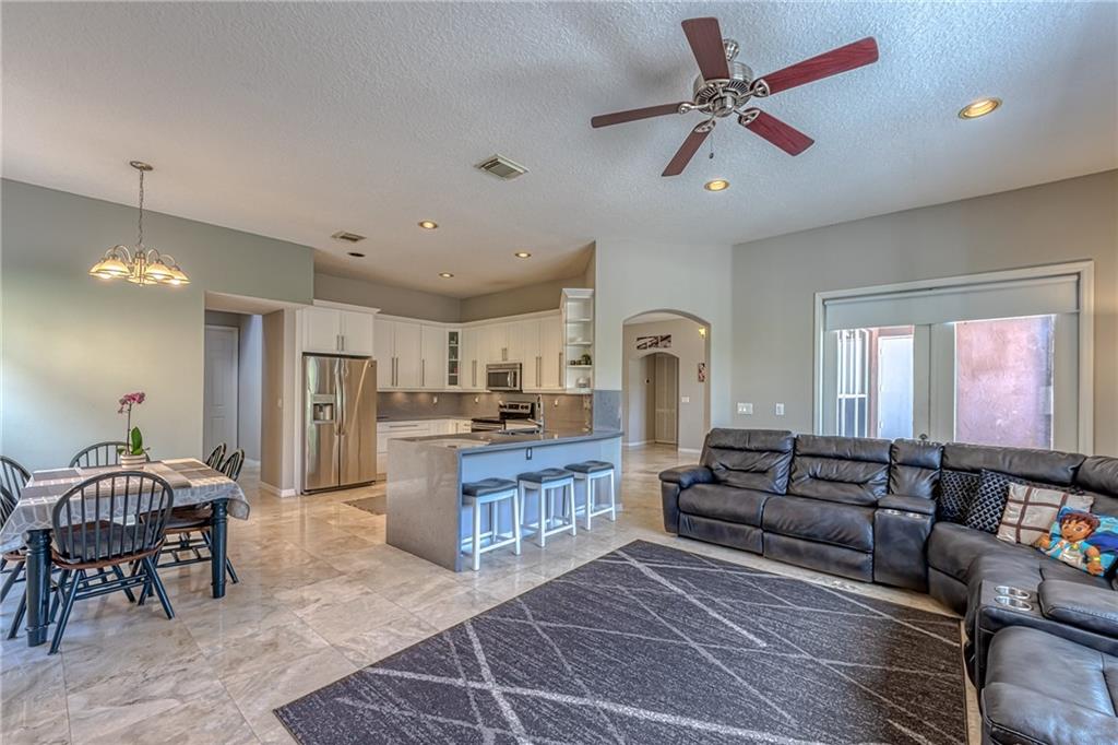 Beautiful 5BD/3.5BA home on large lot in the gated community of Stratford Estates, Windsor Palms. This home checks all the boxes and more with a 3 car garage, high ceilings, large updated kitchen, granite counters, stainless steel appliances, tile floors downstairs and fabulous outdoor space with new salt water pool with lap lane. Backyard is perfect for entertaining and family bbqs. Layout is ideal with master and 3 bedrooms upstairs and open loft. Den/Office and 1 bedroom downstairs with ensuite full bath. Master has large sitting area, private balcony and spacious master bath. Community has a low HOA fee of $145/month. Great family neighborhood, zoned for A rated schools and easy access to I-75.