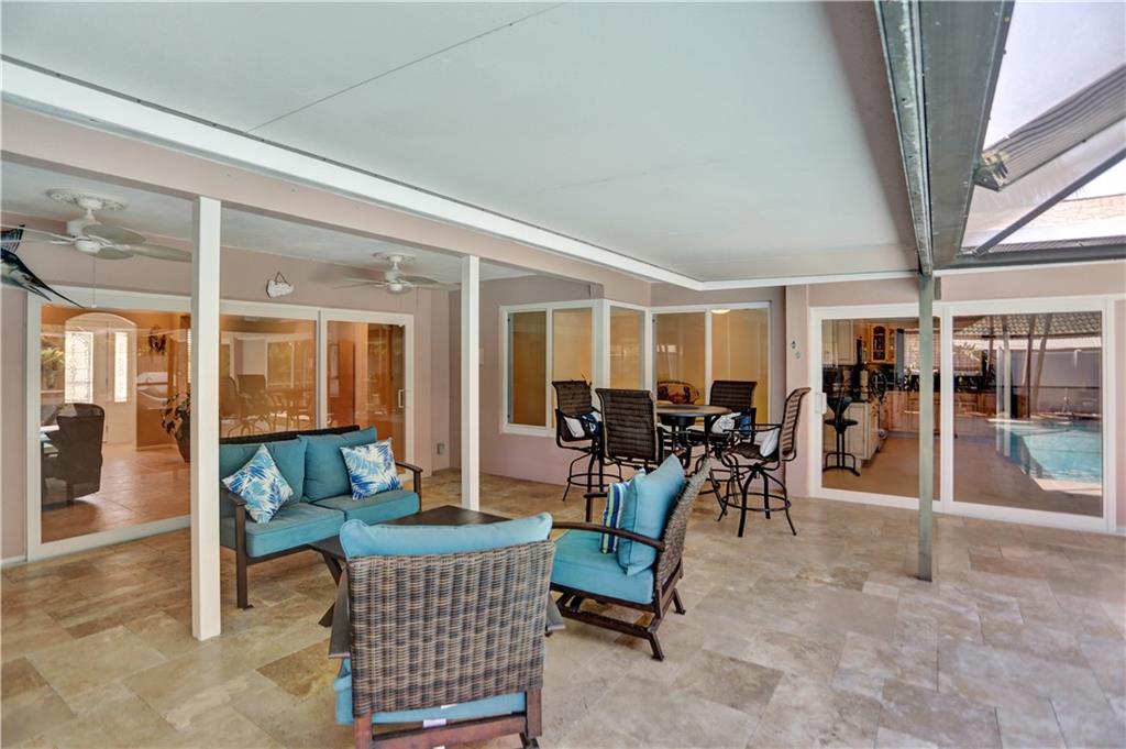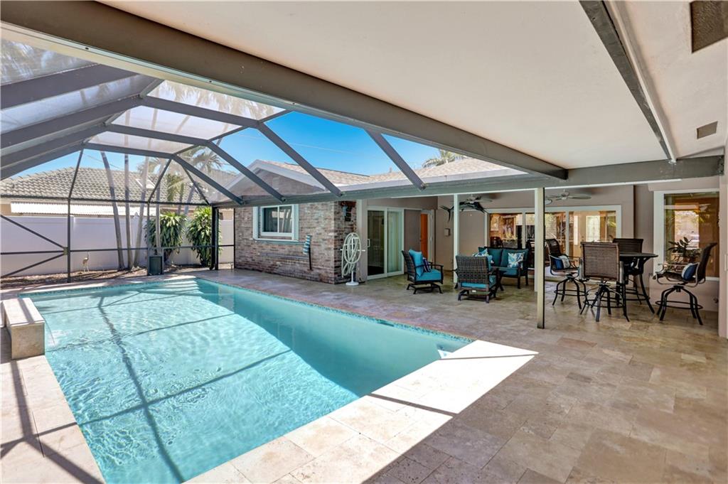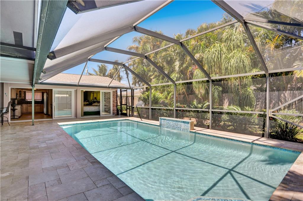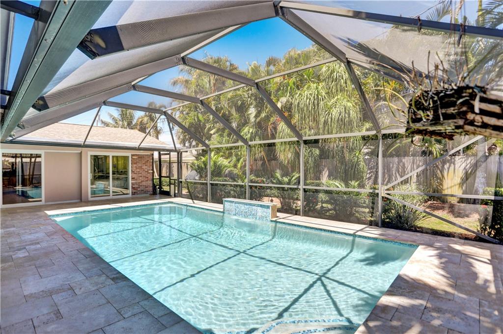 Very inviting entry to this lovely updated home with paver circular drive, enter through beautiful glass door to a breath taking view of sparkling pool with waterfall & open screened out door living. Kitchen updated with granite counter tops stainless appliances, laundry room plus an over sized garage. Master bedroom & bath off kit with pocket slider doors leading to pool, private office overlooking the circular drive,nice living room opening to patio & pool,two more bedrooms & bath all rooms have impact pocket slider doors to open into a great screened patio & a salt water pool. JVR Hurricane doors and window,New Roof,Travertine Marble Patio floor,pool refinished, Garage door opener, Dishwasher & Water heater, New pool pump & A/C, Termite warranty.