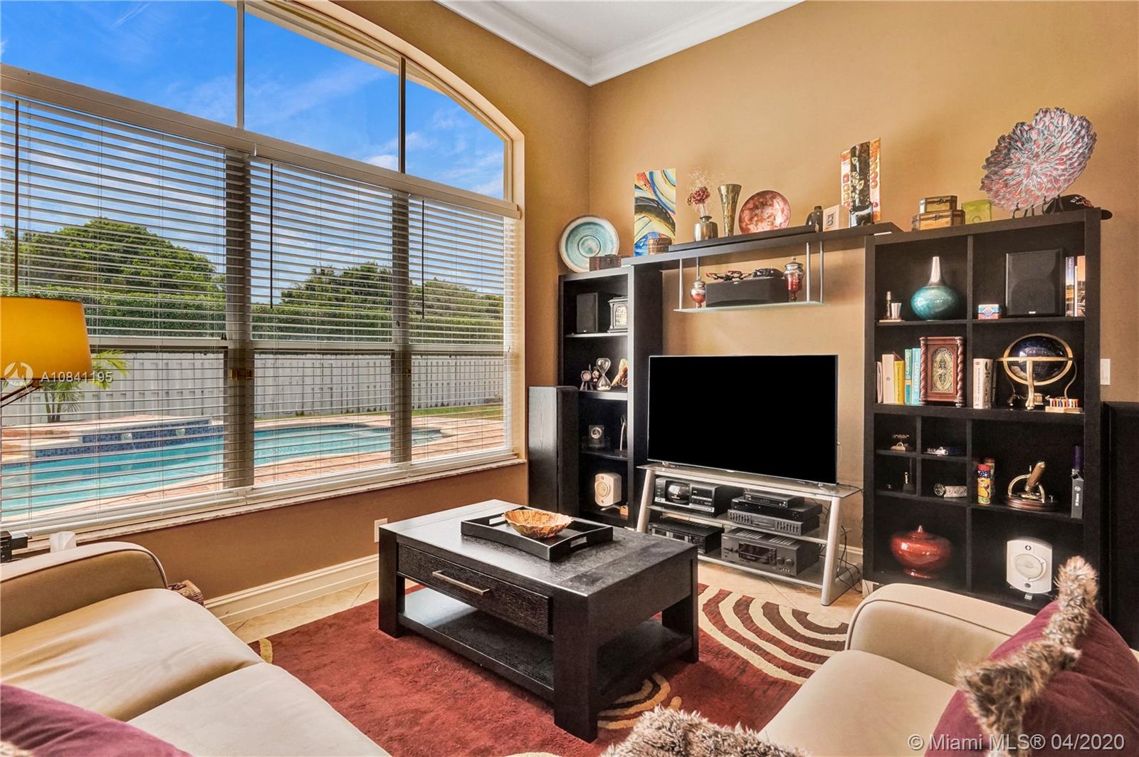 THIS IS A BEAUTIFUL AND SPACIOUS 4/2.5 LOCATED IN THE QUITE COMMUNITY OF HUNTINGTON BRISTOL ISLES, CLOSE TO HIGHWAYS AND POPULAR SHOPS. THE HOME HAS A SPLIT FLOOR PLAN WITH HIGH CEILINGS AND RECESSED LIGHT FIXTURES. THE KITCHEN FEATURES WOOD CABINETS WITH ISLAND AND STAINLESS STEEL APPLIANCES THAT OVERLOOKS THE FAMILY ROOM AND PATIO. THERE IS SEPARATE FORMAL DINING ROOM THAT ACCOMMODATES A LARGE FAMILY. SPACIOUS MASTER BATHROOM WITH ROMAN TUB. THE HOUSE SITS ON A LARGE 10,200 sq ft. LOT AND FEATURES A GORGEOUS SALT WATER TREATMENT POOL. THE PATIO HAS A CANVAS AWNING AND PAVER FLOORS. BEAUTIFUL PAVED DRIVEWAY WITH SPACIOUS 2 CAR GARAGE AND FOYER ENTRY. THE PROPERTY COMES WITH HURRICANE PANELS. THIS PROPERTY WONT LAST LONG!!!