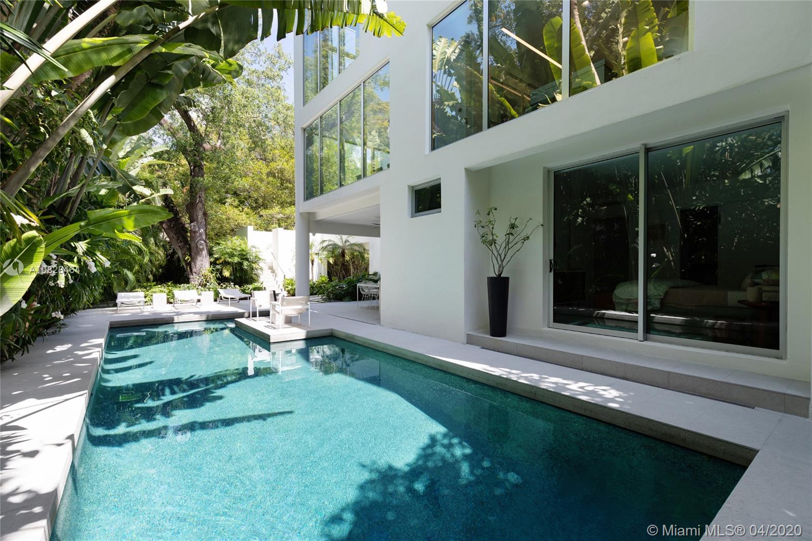 A Max Strang architectural treasure on a coveted, lush South Grove cul-de-sac, offering private police patrol, tranquility, and walkability. Showcased in the Wall Street Journal and Florida Design, this is the perfect backdrop for your lifestyle. An impressive entryway flows seamlessly into the heart of this modern home – an atrium-like living room with 40’ ceilings, walls of glass, and views of the treetops. A kitchen that chefs dream of! A large family room extends out to an ultra-private pool, summer kitchen, and cabana bath. The current owners took something spectacular and made it even more stunning. Every detail blends function, serenity, and beauty. Come make this retreat yours!