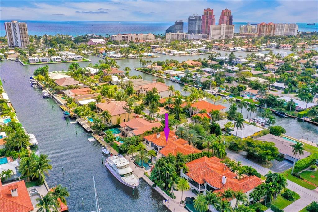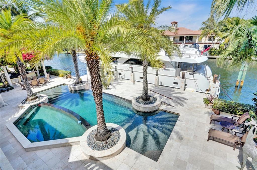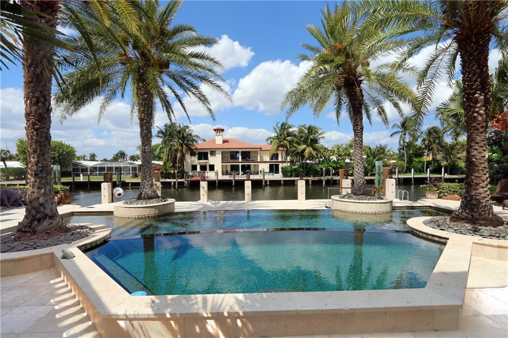 Unique custom home conveniently located on a quite street in one of Fort Lauderdale's finest waterfront communities: only minutes from beaches, Coral Ridge Country Club, Coral Ridge Yacht Club, excellent restaurants, shopping, schools, airports and Port Everglades. Craftmanship details and quality materials. 100’deep water dock, outdoor kitchen, waterfall pool, w/jacuzzi and featuring a chef’s kitchen with high end appliances, complemented by a 850 bottle wine cellar. Quiet, comfortable, perfect for entertaining, indoors and out. Elevator, large master with his and hers areas, morning bar, custom display shelving, electric shades, balcony, 2 large walk in closets, 1 w/updated dressing room. Open, airy, three car garage, and beautifully landscaped 12,004 sq.ft. lot, with circular drive.