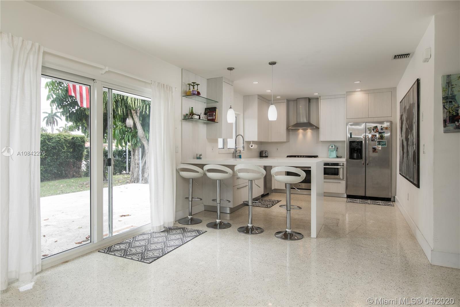 Absolutely gorgeous renovated family home just steps from the park on posh Normandy Isle! Nestled on an oversized corner lot in wonderful, family-friendly North Beach. Fully enclosed back & side yards, spacious semi-circle driveway entrance on quiet Rue Bordeaux and delicious fruit trees make this home tailor-made for Sunday BBQ's, indoor-outdoor living and happy ambiance. Fantastic wide-open floorplan sporting impact windows & doors, a sparkling quartz & stainless steel kitchen, formal dining & living rooms, separate laundry room w/ utility sink & gleaming terrazzo flrs. A spacious master suite, walk-in closets, extra storage shed & 3 additional bedrooms provide ample space for the whole fam. Walk to the fountain, the park & pool, the farmers market, sushi boats & of course, the beach!