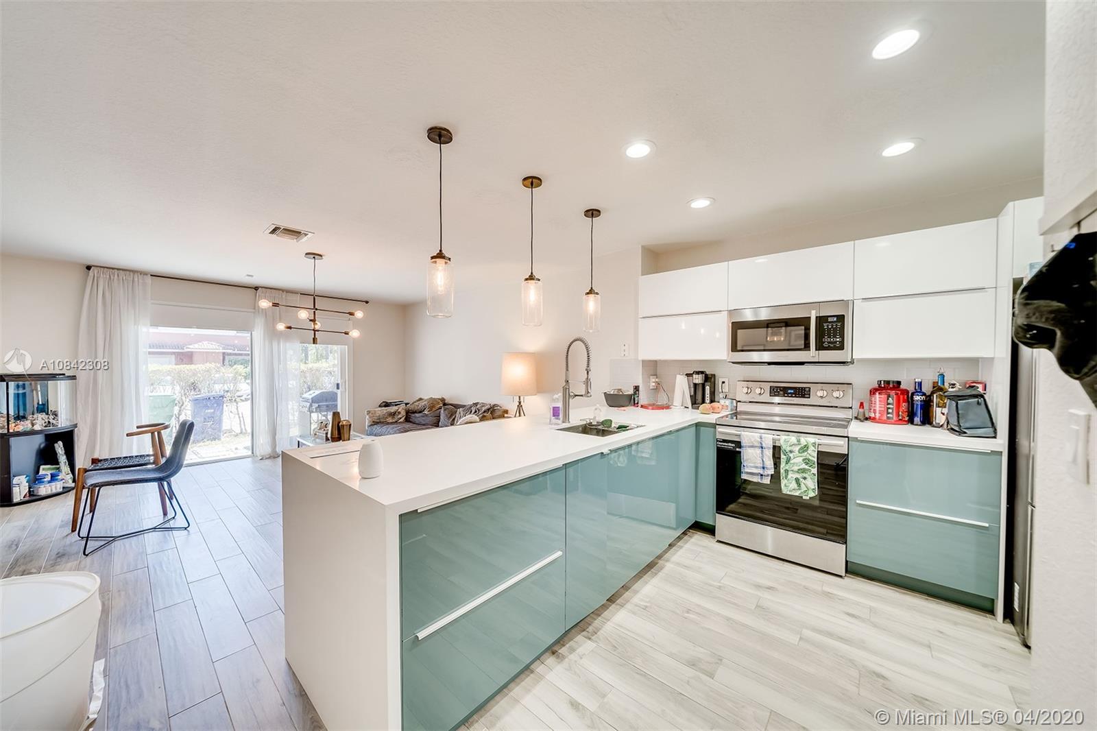 Stunning, completely remodeled 2/2.5 townhome in Mirabella! Gorgeous kitchen with quartz countertops, oversized cabinets, subway tile backsplash & stainless steel appliances. Open to the family & dining rooms great for entertaining. New plank style tile flooring. Bronze finish lighting fixtures & recessed lighting. Deep baseboards.Staircase with wood banister & wrought iron. Remodeled bathrooms feature floating vanities & frameless shower enclosure. Indoor laundry. Outdoor patio area. Community pool & playground. This property is out of a magazine. Insurance included in HOA fee. Impeccably renovated.
