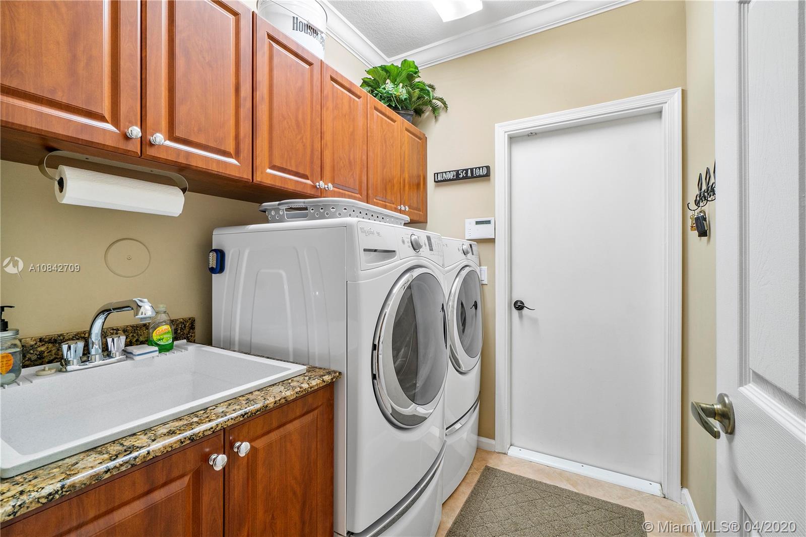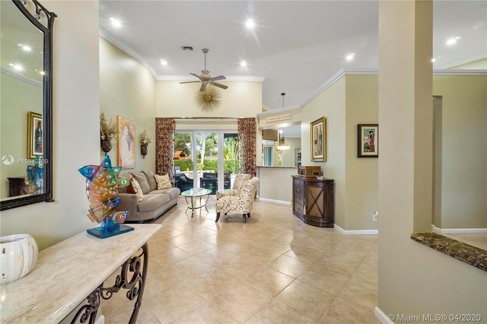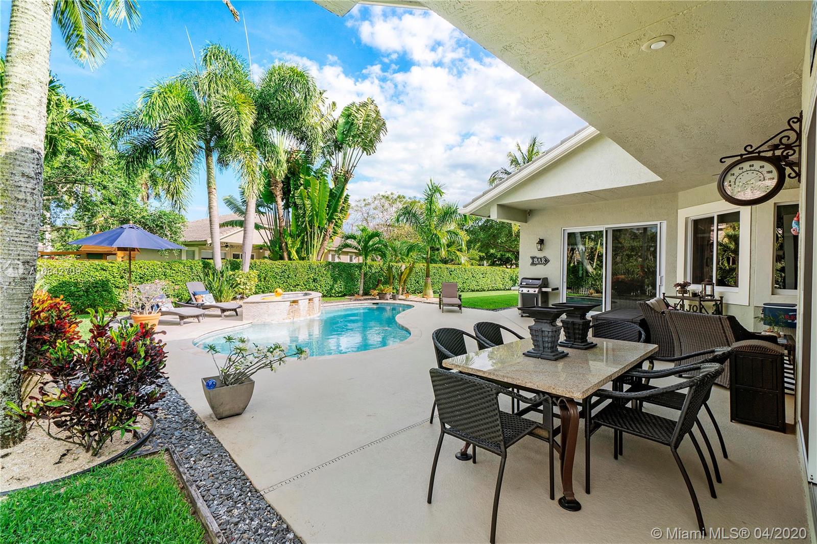 This is the ONE! Impeccably maintained Kensington Chelsea Home that sparkles like a rare Gem. Gorgeous Home from every angle. Tasteful upgrades included : Gourmet Kitchen w/ Granite Counters, Stainless Steel Appliances, Custom Cabinets, New Hurricane Garage Doors, Crown Molding, Knockdown Ceilings, Newer AC and Water Heater. Inside Laundry Room w/ high end washer and dryer. Triple Split Floor plan w/ private bathroom can be used as the perfect mother in law quarters. Large den is perfect for home office. All 3 bathrooms have WOW Factor improvements. Step outside to your own Private Oasis w/Custom Pool,