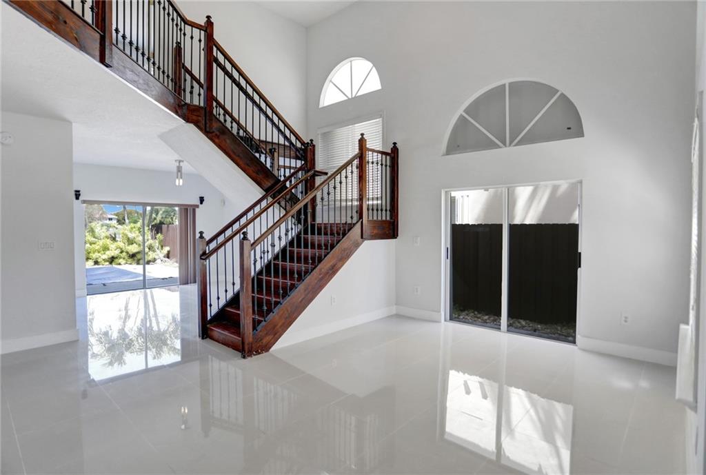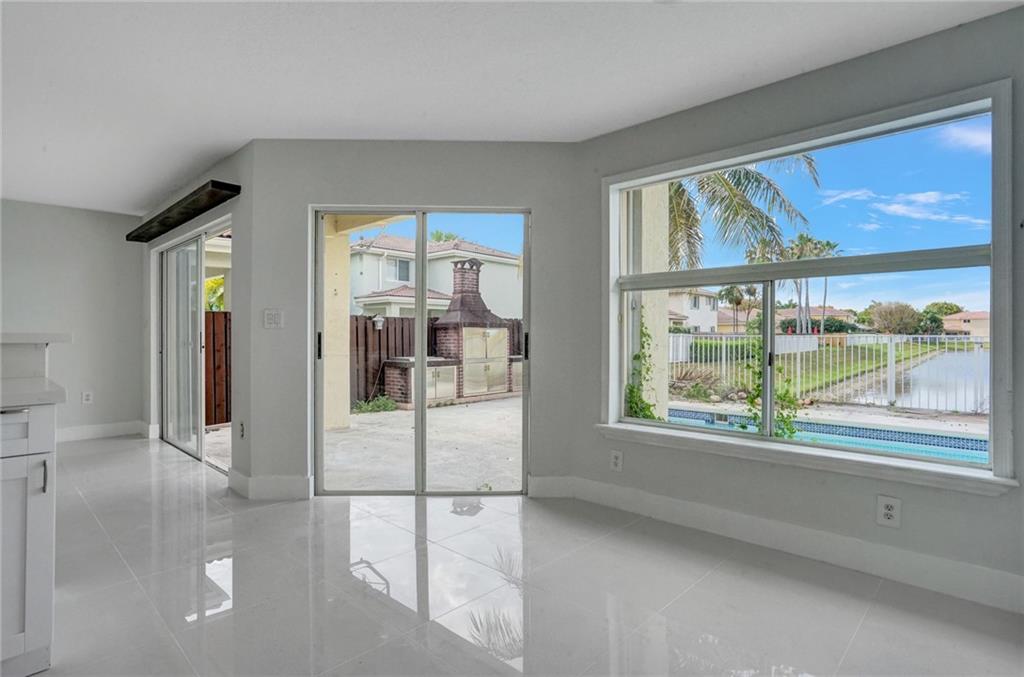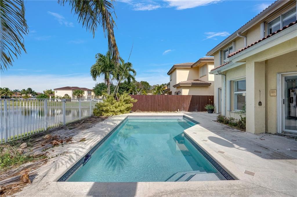 NOT AVAILABLE FOR RENT Stunning Lakefront single-family two-story pool home with 4 bedroom/ 3.5 baths. This gorgeous home boasts an open floor plan with a brand new kitchen complete with new cabinets and quartz countertops, stainless steel appliances, and a wrap-around snack counter and breakfast nook—freshly painted interior, new porcelain flooring downstairs, custom closets, and modern vanities in baths. The backyard is perfect for entertaining with a gorgeous pool and brick style BBQ grill. This home is located in a gated community of Doral Meadows close to turnpikes, 4 golf courses, dolphin mall, restaurants, excellent schools, nine city parks, and much more. * Low association fees, No CDD Tax, No FloodZone (x), and Pet-friendly