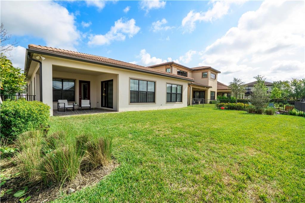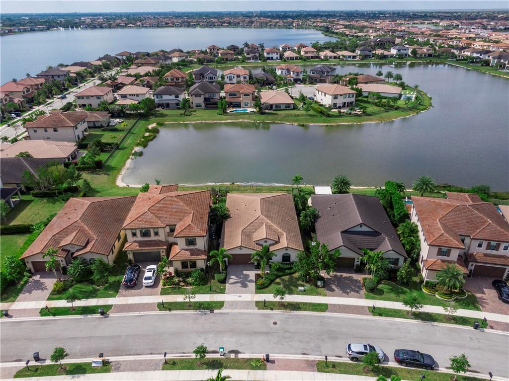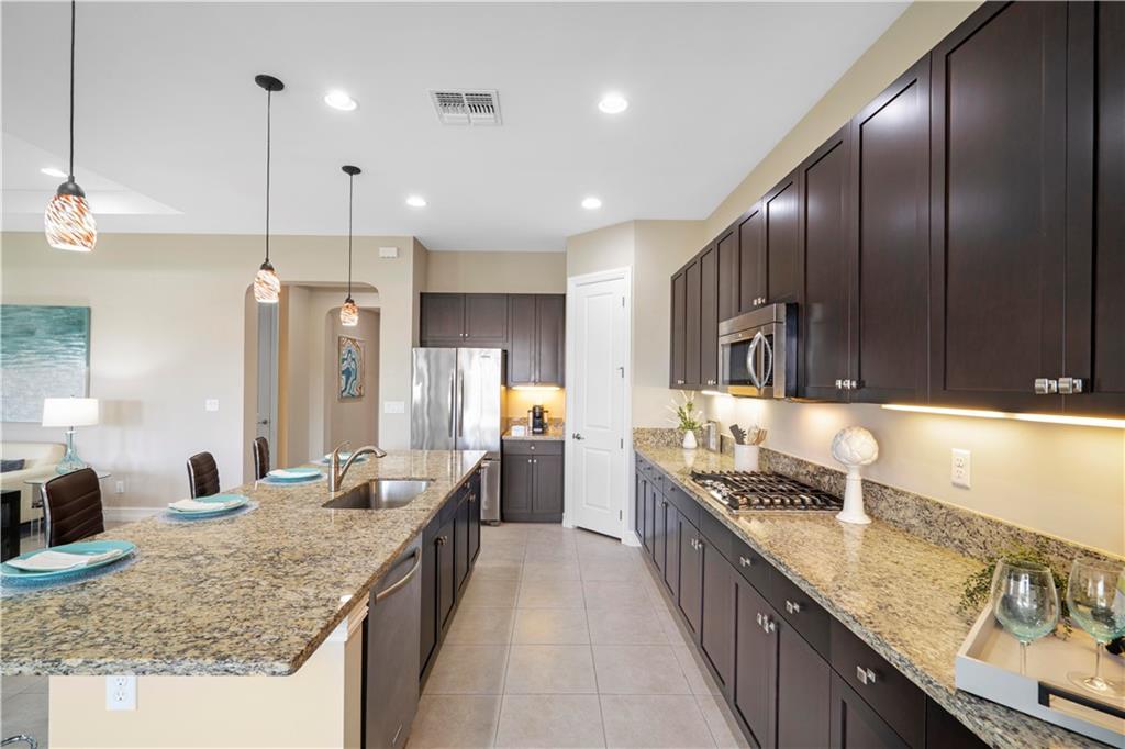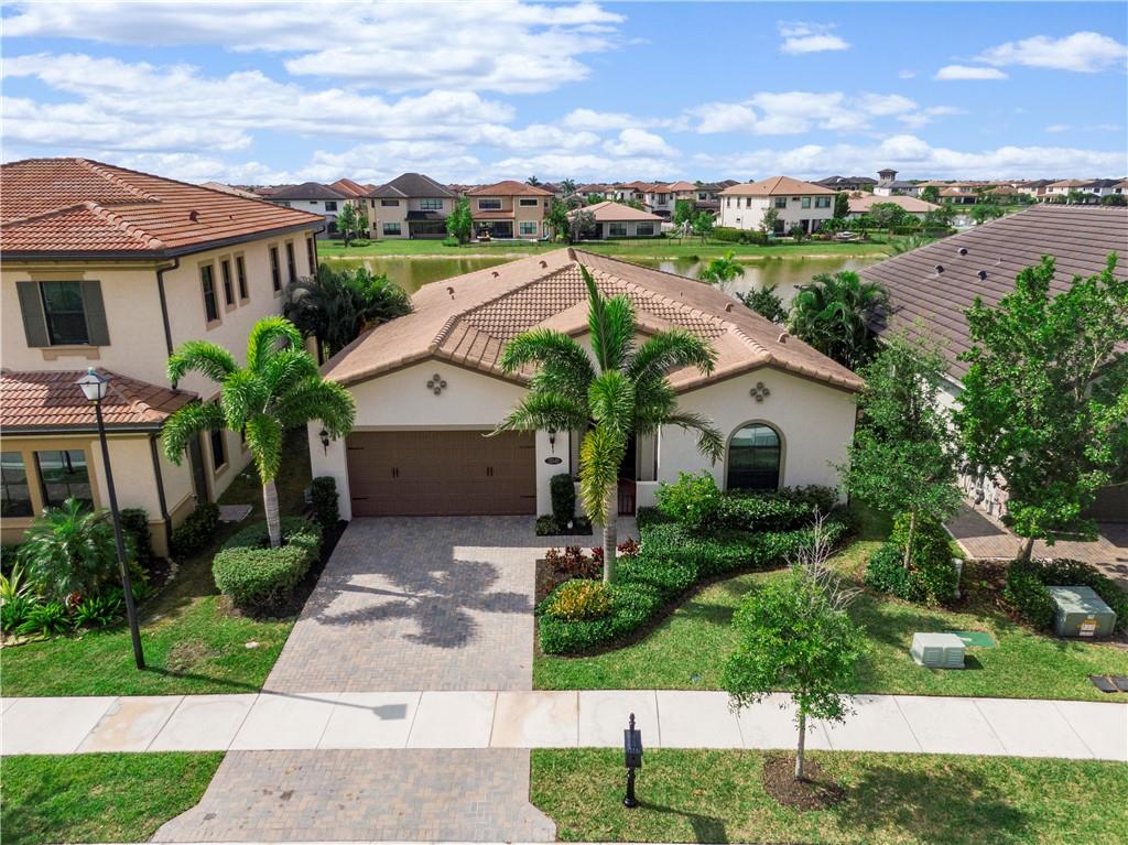 This beautiful Kensington Model is located on a prime lot with tranquil water views! Features include an open floor plan with a foyer entrance, tray ceilings, light grey interior paint, great room, casual dining, tile floors in the main living areas, upgraded carpeting in the bedrooms, wood floors in the den ( 4th bedroom ), smooth walls & ceilings and recessed lighting! The kitchen has espresso wood cabinets, granite counters, under cabinet & pendant lights, pantry, a huge center island & Kitchen Aid stainless steel appliances! All the bathrooms have white vanities with quartz counters and tile to the ceiling with decorative listello trim! Enjoy the covered patio, the fenced landscaped yard & the water views! This gated community has amazing amenities! South Florida Living at its best!