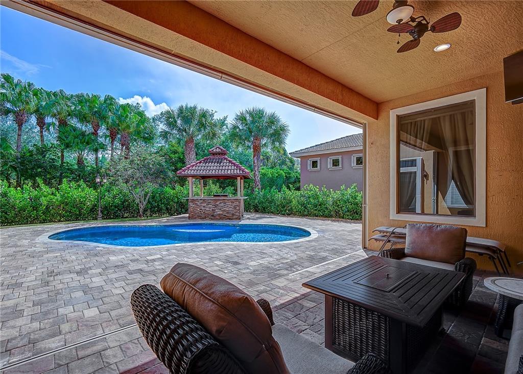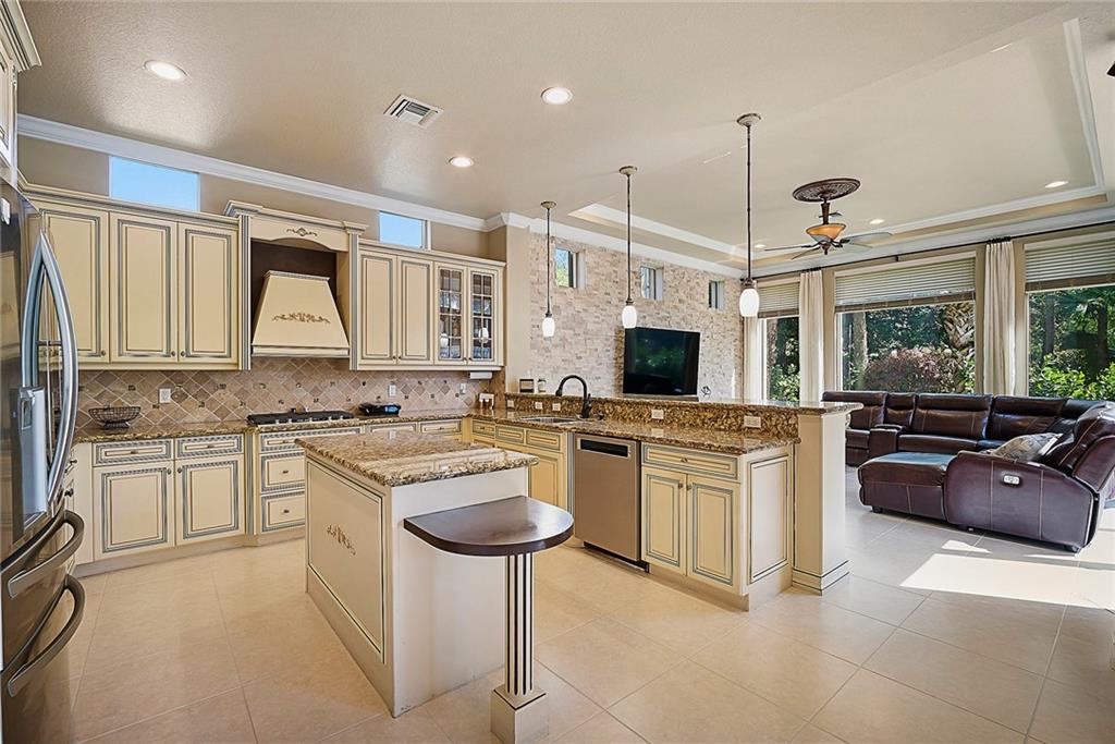 Gorgeous, oversized Mediterranean Pool Estate with everything you need to relax and unwind. This home has 6 bedr, 5 bath, office w/ custom built-ins, LARGE bonus room, Gourmet kitchen w/ natural gas,SS appliances, large prep island, Family room w/ beautiful accent wall & built in media, wine chiller room, laundry chute to a separate laundry room, custom closets, mosquito control system for yard & patio, master Jacuzzi, Tankless gas water heater for the house w large capacity flow to run multiple showers or appliances, 3 car garage w/storage systems, newly tuned accordion shutters and more! New Pool Diamond Bright, new coping, extended cabana bar & upgraded appliances for the outdoor kitchen. Gas pool heater. All new privacy landscaping. Ask about Touch-less showings and VIDEO tour.