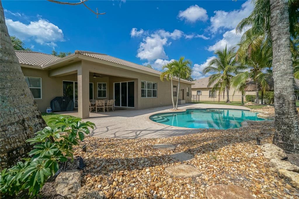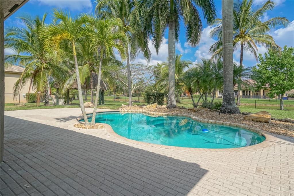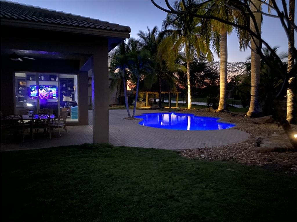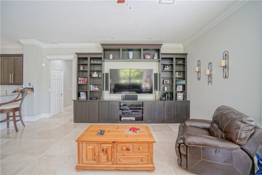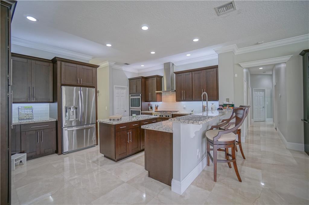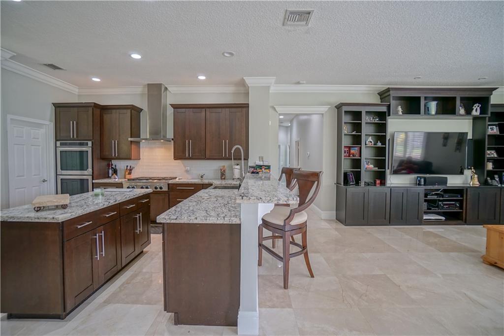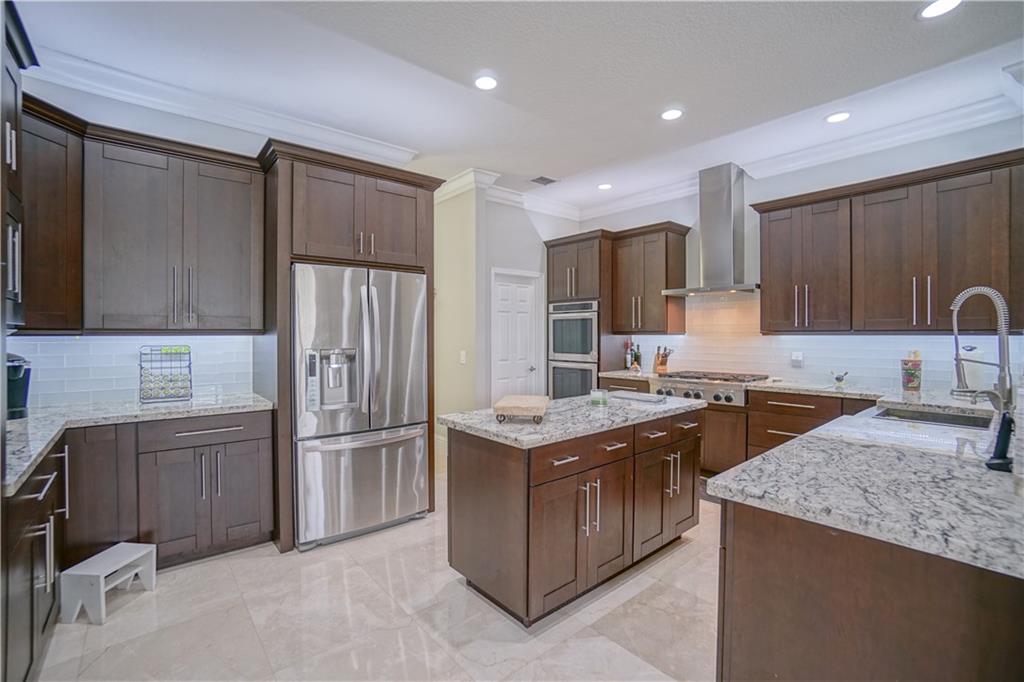 This home is upgraded to the max! MARBLE & WOOD floors throughout. EXPANDED KITCHEN has deep SHAKER OMEGA CABINETS, GRANITE COUNTERS, SUBWAY GLASS back-splash, under cabinet LED LIGHTING, STAINLESS STEEL appliances, a DOUBLE OVEN & a SIX BURNER GAS stove. Dream master bath has a 2'x2' RAIN SHOWER with DESIGNER TUB & upgraded cabinets w/ MARBLE COUNTERS. Designer built-in entertainment center in family room w/ SURROUND SOUND. Large open pool area w/ TIKI HUT. Pool has LED LIGHTING - see pics. CALIFORNIA CLOSETS throughout. Maintenance is paid quarterly.**SEE BROKER'S REMARKS**