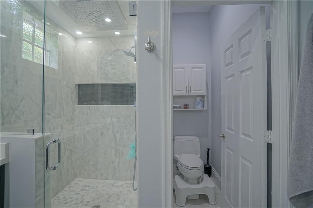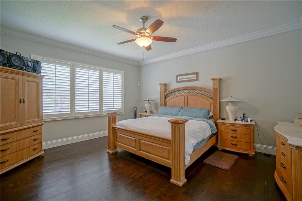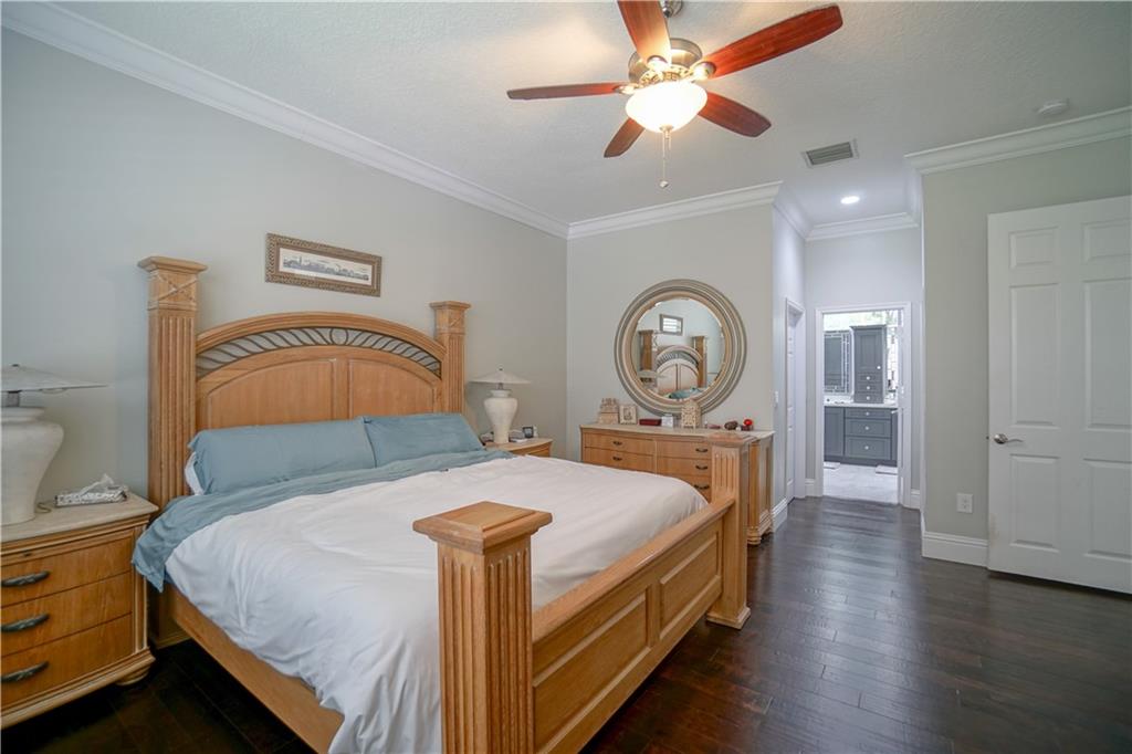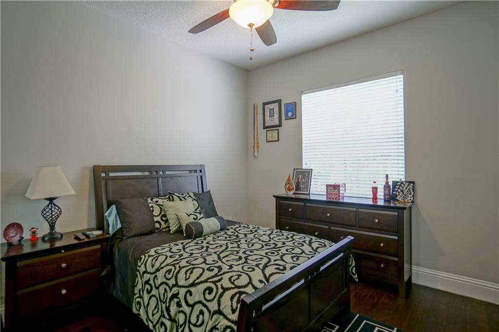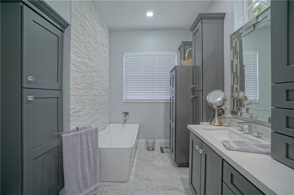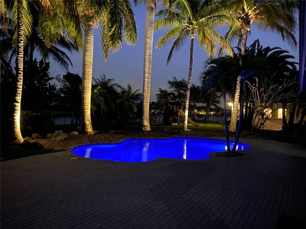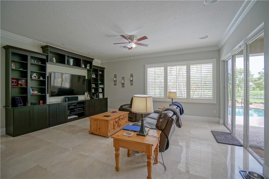 This home is upgraded to the max! MARBLE & WOOD floors throughout. EXPANDED KITCHEN has deep SHAKER OMEGA CABINETS, GRANITE COUNTERS, SUBWAY GLASS back-splash, under cabinet LED LIGHTING, STAINLESS STEEL appliances, a DOUBLE OVEN & a SIX BURNER GAS stove. Dream master bath has a 2'x2' RAIN SHOWER with DESIGNER TUB & upgraded cabinets w/ MARBLE COUNTERS. Designer built-in entertainment center in family room w/ SURROUND SOUND. Large open pool area w/ TIKI HUT. Pool has LED LIGHTING - see pics. CALIFORNIA CLOSETS throughout. Maintenance is paid quarterly.**SEE BROKER'S REMARKS**