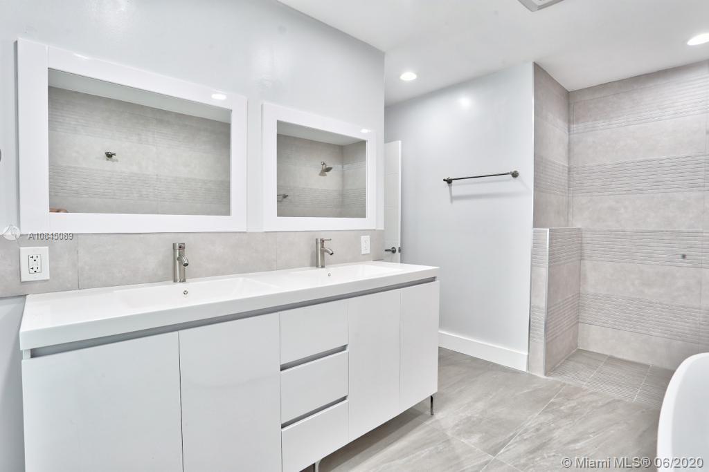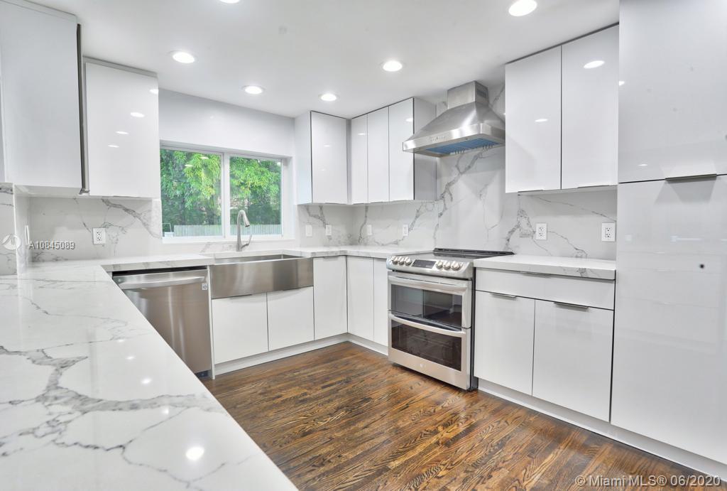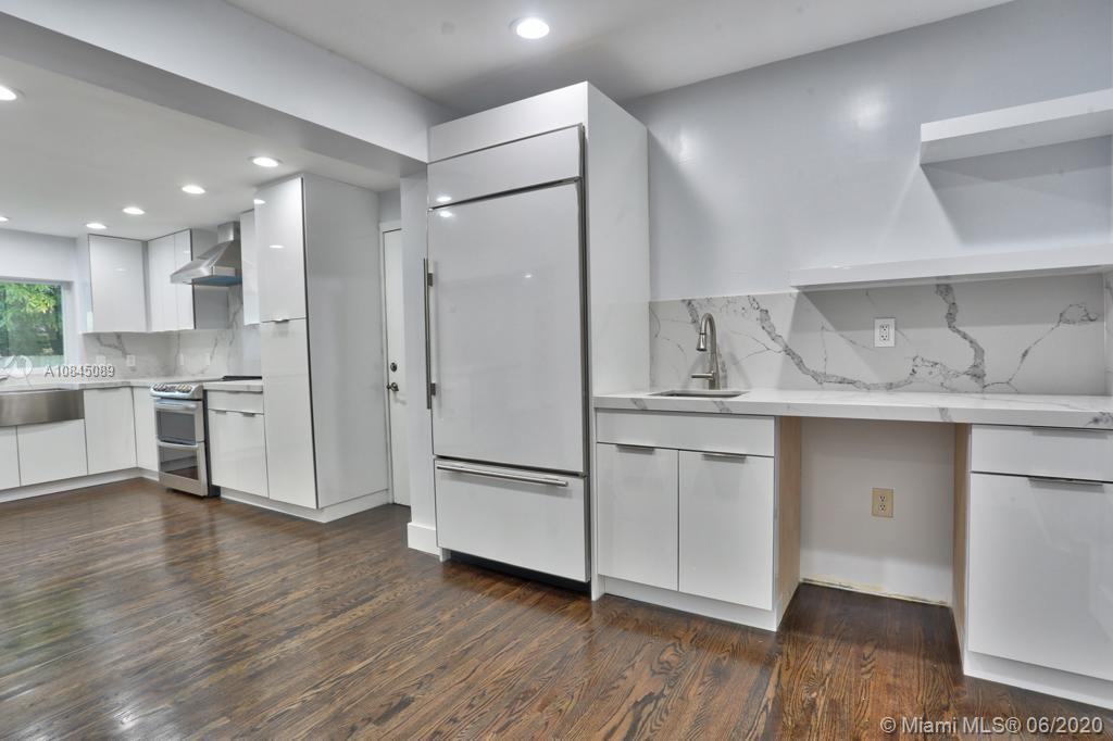 This Miami Shores home has been totally remodeled. There are (4) bedrooms & (3) baths, living room with wood-burning fireplace & formal dining room,huge family room,new large kitchen with plenty of cabinet space,Sub-Zero, wet bar, peninsula, top of the line cabinets,white Calacatta quartz countertops,exhaust fan, farmhouse kitchen sink, and electric LG double oven range.New master bedroom with a large walk-in closet and a beautiful new master bathroom with a double sink vanity, free-standing bathtub, and a 3’x6’ beach entrance style shower.There are (2) Master bedrooms. The new deck opens to the backyard from the family room. There is new plumbing,new electrical,new septic tank,new flat roof,new CGI impact-resistant windows,and French doors. New driveway and entrance steps. One car garage