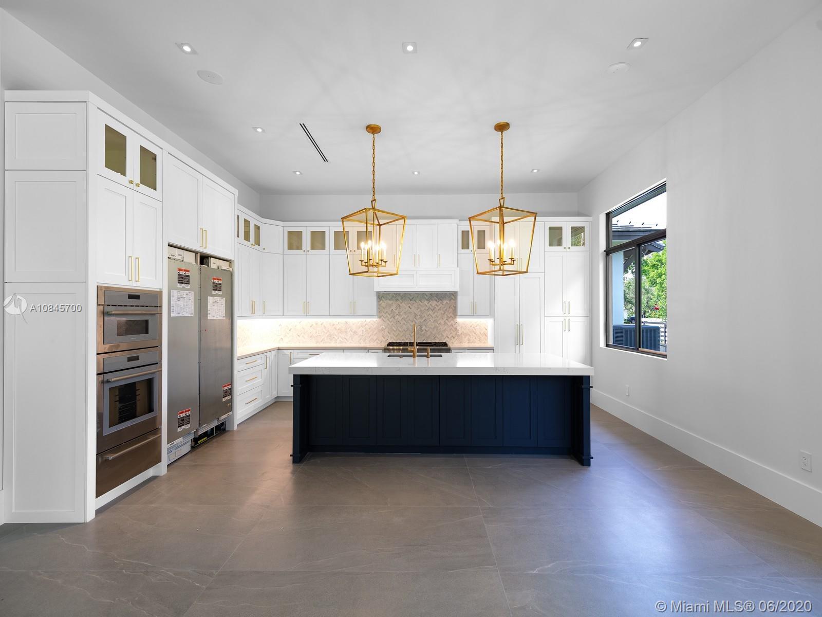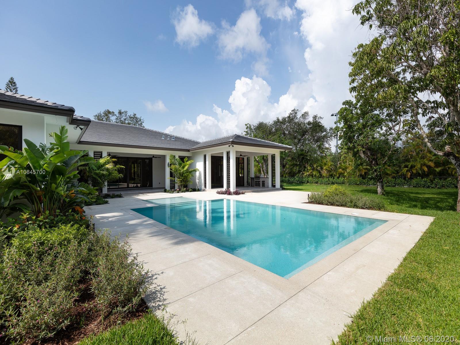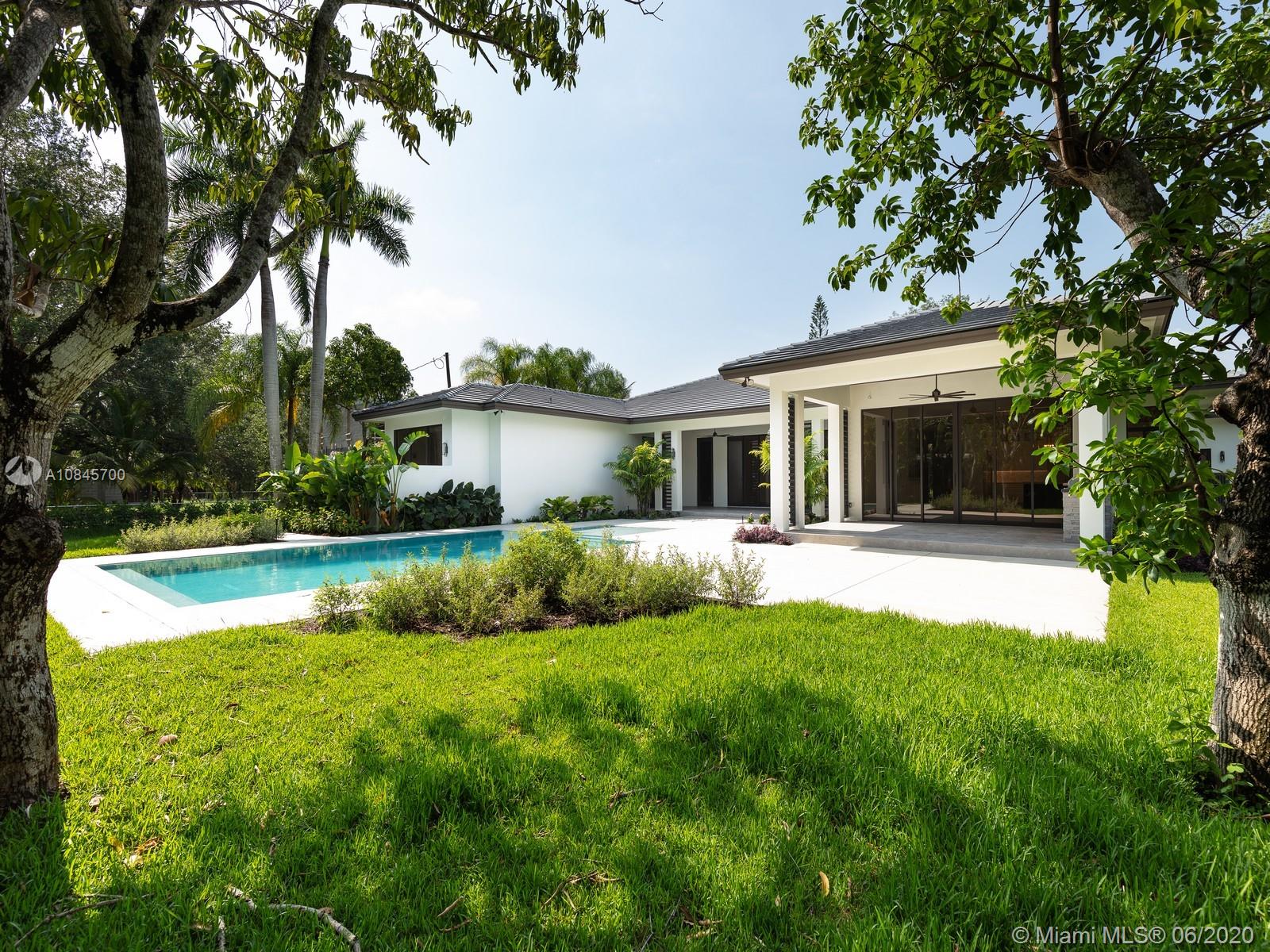 Spectacular Brand-New Construction & nearly ready for occupancy is this transitional modern luxury Estate. This 1-story custm new-development home located in the heart of Pinecrest, rests on a spacious 32,234 corner lot offering an exceptional open flr plan spanning 5 bd & 5 ba. Expansive living areas, family rm, wine gallery & bar make this home great to entertain. Spacious & Beautiful Island kit w/top of the line Thermador appl, custm wd cabinetry, quartz counter tops. Master ste offers great space, double large walk in closets, resort style bath w/double vanities & a private cove outside the master shower. Add Feat: High ceilings, cove lighting, Imp windows/drs, 3 car garage, modern driveway fully gated, summer kit, ample yd w/pool. Great schls & major expressways. 1 Year builder Warr.