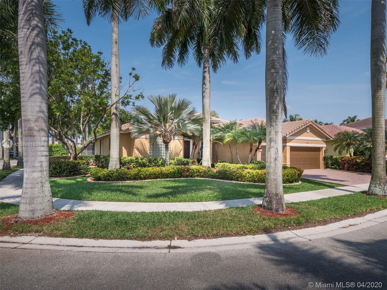 Beautiful Weston Hills Country Club - Harbor Pointe home with upgrades throughout. This spacious 4 bedroom / 3 bathroom home has a triple split floor plan. 12' ceilings with large windows provides an impressive backdrop for any gathering. Open kitchen with 42" cabinets and granite counter tops. Recently painted exterior. Enjoy this spectacular backyard including pool, large screened in patio and plenty of open space for the kids to play. Accordian shutters. Newer AC. 3-car garage. 11,000sf corner lot