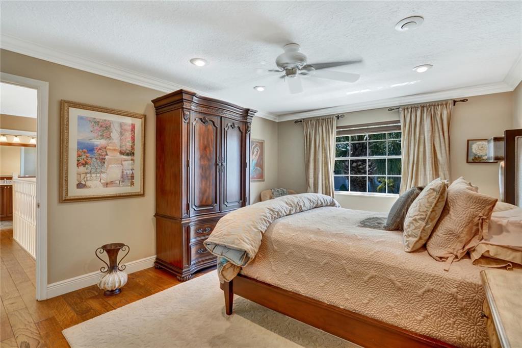 This COMPLETELY REMODELED home shows TRUE PRIDE OF OWNERSHIP by the original owner! This beautiful home sits on a corner lot in a gated community. The open concept gourmet kitchen is custom built, and offers a huge cooking island, wood cabinets, high level granite countertops, and newer SS appliances. Travertine marble floors downstairs and hardwood floors upstairs. The master suite features a stunning remodeled bathroom with a large walk-in closet and custom built-ins. The tropical backyard is fenced in and has room for a pool. ONE BEDROOM IS ON THE FIRST FLOOR and Laundry room is under AC. Roof is from 2007 - One AC from 2017. Complete hurricane protection. A-RATED SCHOOLS with great shops/restaurants in the area. Enjoy the resort style amenities WITHOUT the high fees.