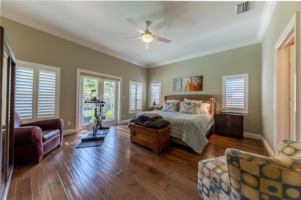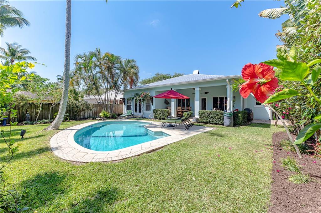 All Dressed Up and Ready to be Seen! Easy one story living in this (2012) 3BR/2BA offering all the benefits of a newer house; open plan, volume ceilings, hardwood flooring, a wood burning fireplace, a Chef's kitchen, a poolside Master w/luxury bath and spacious walk-in closet, whole house generator, attic storage and a covered loggia overlooking a resort style pool and private gardens. The professionally designed cooking center boasts quartz countertops, custom hardwood cabinetry, stainless appliances and a huge preparation island and has an additional breakfast bar providing extra seating. The laundry is located off the kitchen with access to the garage and provides added storage. The foyer entry gives way to contemporary sunlit interiors with most rooms offering pool and garden views.