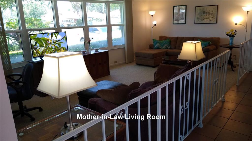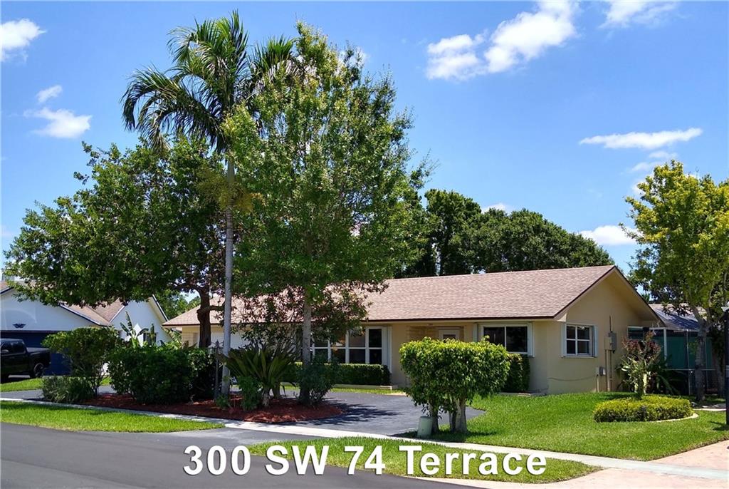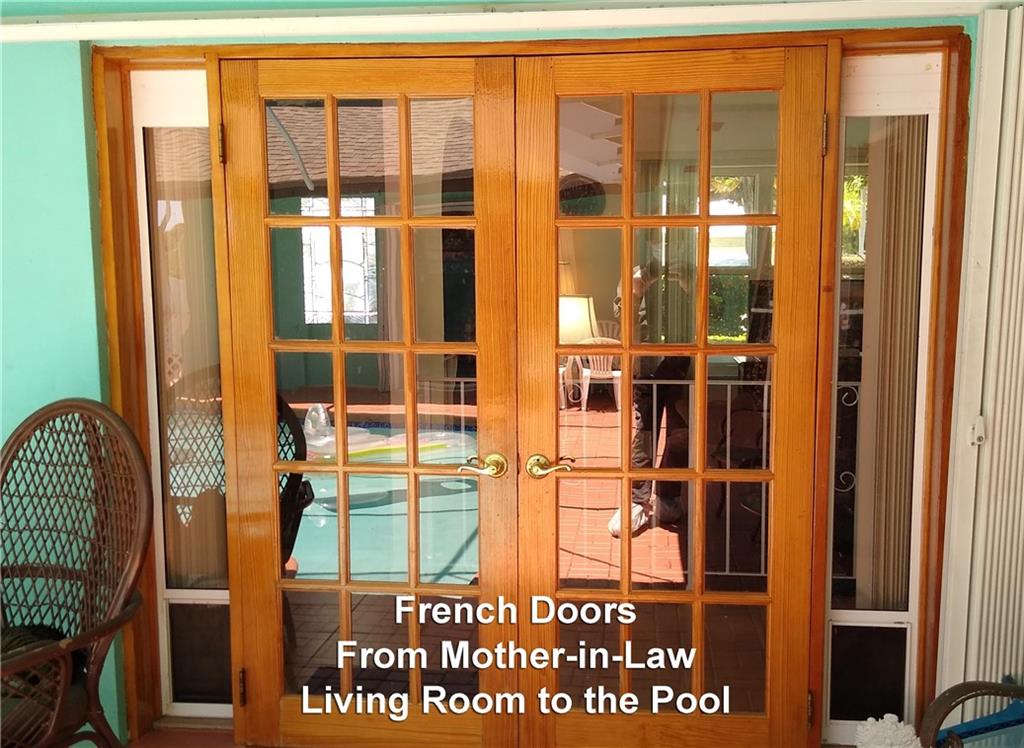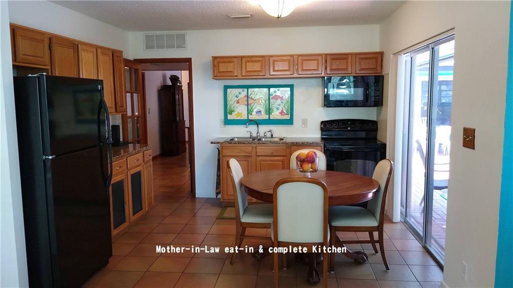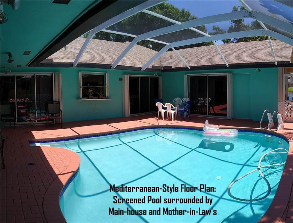 Beautiful waterfront home in highly desirable El Dorado Estates: 5 bedrooms, 3 baths, living room, family room, formal dining room & unique 2 kitchen design. The salt/chlorine-generated pool is solar equipped, vaulted screen enclosure, & new brick pavers. The well kept yard has 15 trees including fruit trees. The seawall child-safe fence allows room to enjoy outdoor activities. There's a fishing pier on canal. The front of the house can be a private living space for in-laws, older children, nanny, etc. It has its own entrance, bedroom, cabana bathroom, eat-in kitchen, large living room, & handicap features. New AC ducts, new electric panel, granite tops in kitchens, hurricane shutters. Extra storage space in kitchens, bathrooms and garage because who doesn't need extra storage? A MUST SEE!