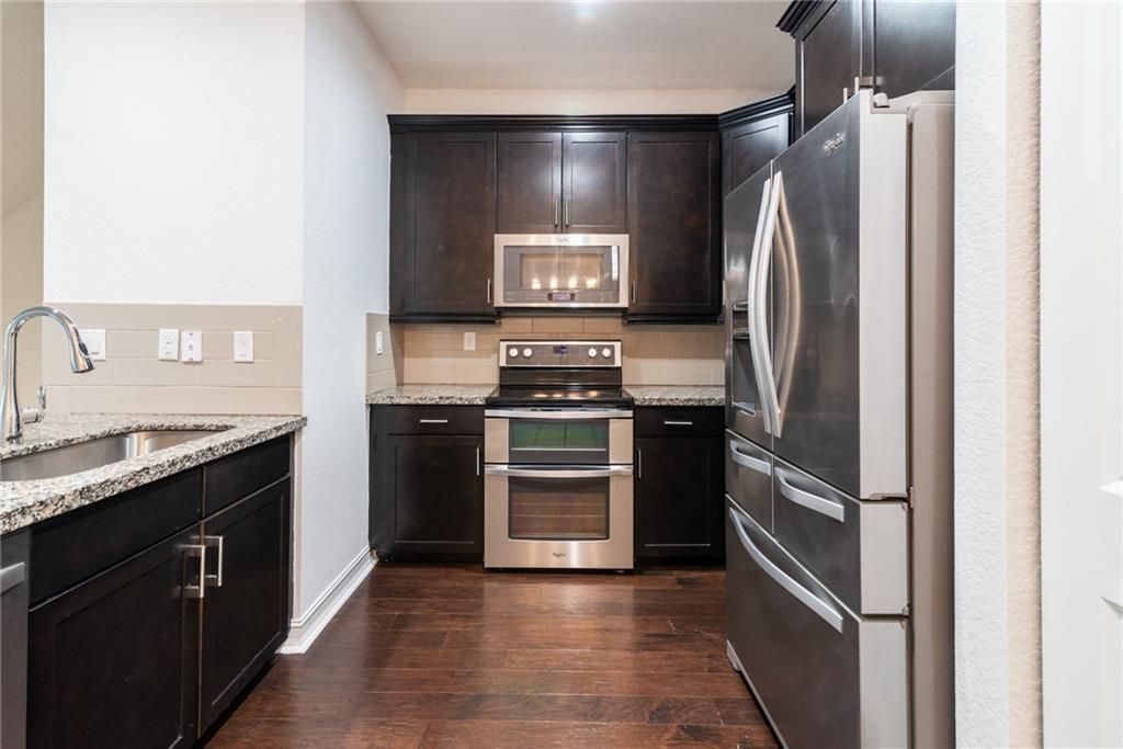 Spacious 3 bed, 3.5 bath townhome w/ attached 2-car garage in beautiful gated community of Raintree. This tri-level townhouse offers upgraded kitchen with newer Whirlpool stainless steel appliances, granite counter tops, plenty of cabinet space, impact windows, newer washer/dryer.Newer wood floor in three levels. Large walk-in closet in master bedroom. Separate garden style tub & walk-in shower, with double vanities in master bathroom. Open 2nd floor balcony with manicured garden view. High ceilings throughout the house. Clubhouse with pool and gym; low HOA fees. Plenty of guest parking. Close to shops, mall, medical and educational facilities.
