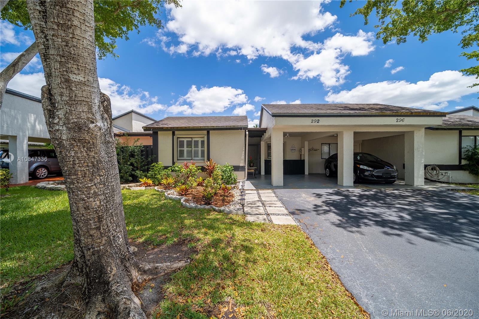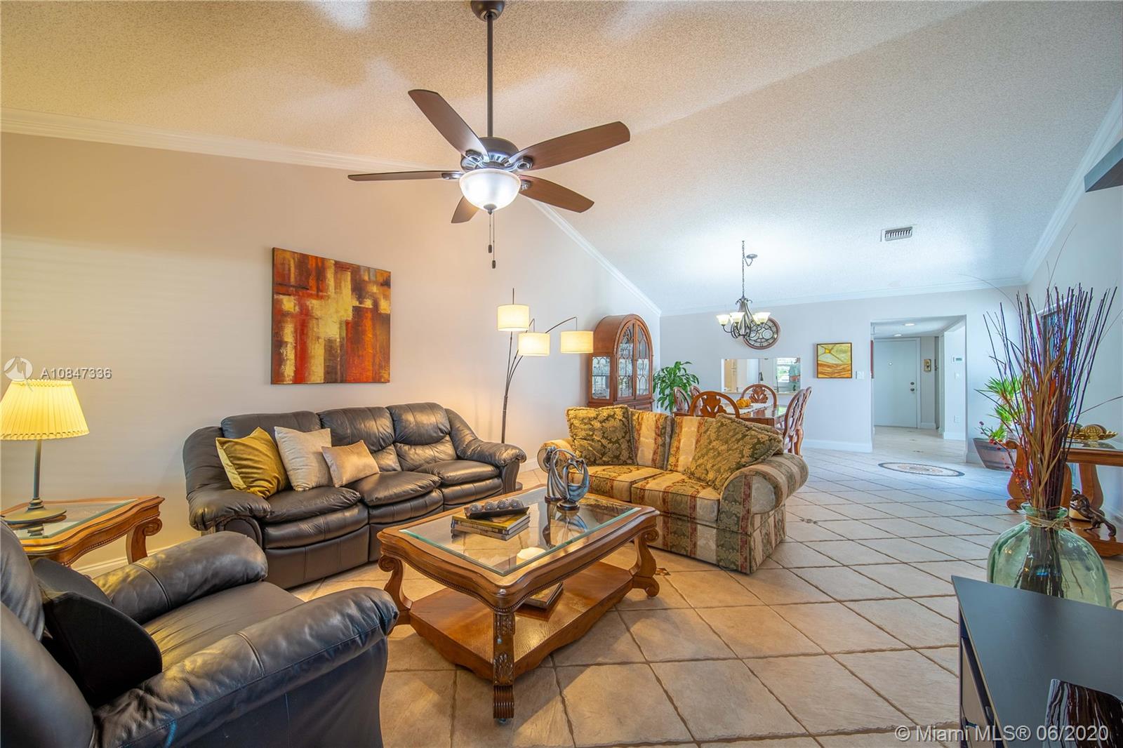 Move-in ready villa in highly desired 'Villas of Bonaventure' in WESTON, FL. 1500 sq ft, lots of natural lighting compliments of a lovely atrium. High vaulted ceilings, screened in back terrace, front door parking in covered carport and accordion shutters. Features 3 bedrooms, 2 updated bathrooms (1 bedroom is open being used as additional living area but easily converted to a bedroom by simply putting up a partition). Large rooms with walk in closet in master bedroom. Tiled through out with updated eat in kitchen and baths. Pet friendly community with pool, activity room, bowling, tennis, basketball, bbq area & much more. Condo association has reserves! 10% dep req by assoc. Building insurance covered with monthly assoc dues. VIRTUAL TOUR COPY & PASTE LINK https://youtu.be/jKP1_gsKU-8