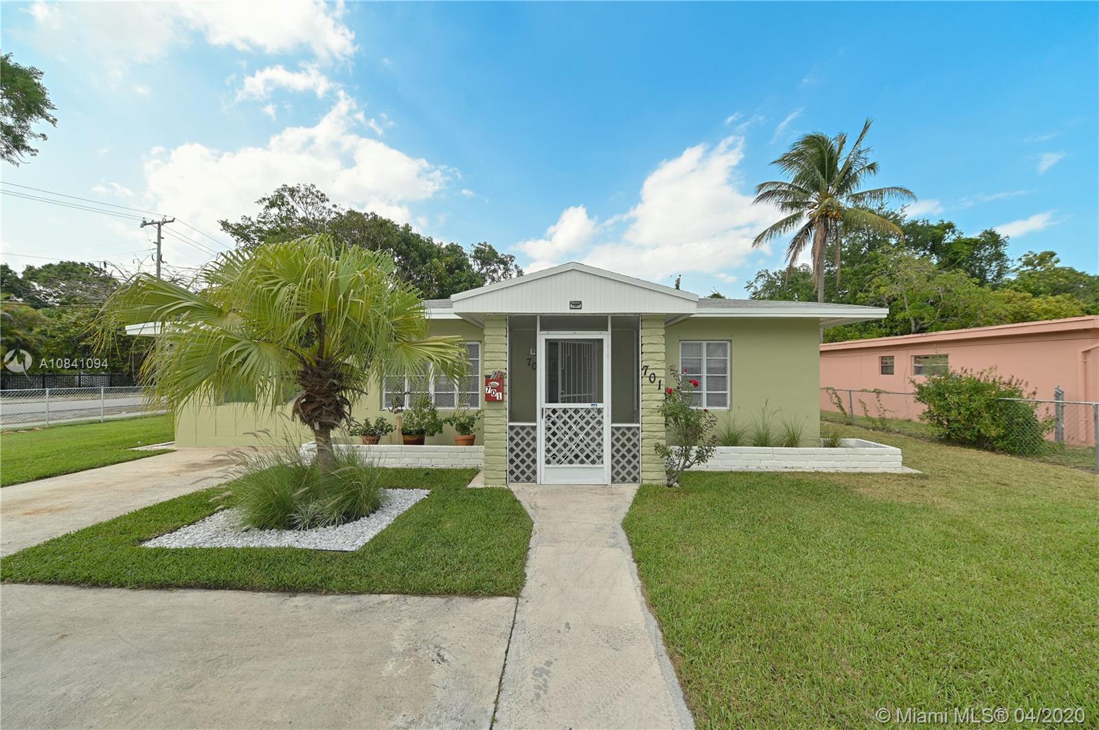 Charming North Miami home on a corner lot with wraparound green landscape. Featuring 3 Bedrooms & 1 Bathroom with 1135 sqft. Walking through a foyer with lots of natural light in living room/family room. Enjoy cooking and entertaining guest in a custom kitchen featuring a rolling island, and lots of storage/cabinets with dining area adjacent. Spend time and relax in your own screened patio that oversees all of the back patio and large mango tree. Home includes 2 sheds for tools or equipment. Minutes from Schools, Parks, Shopping & I95.