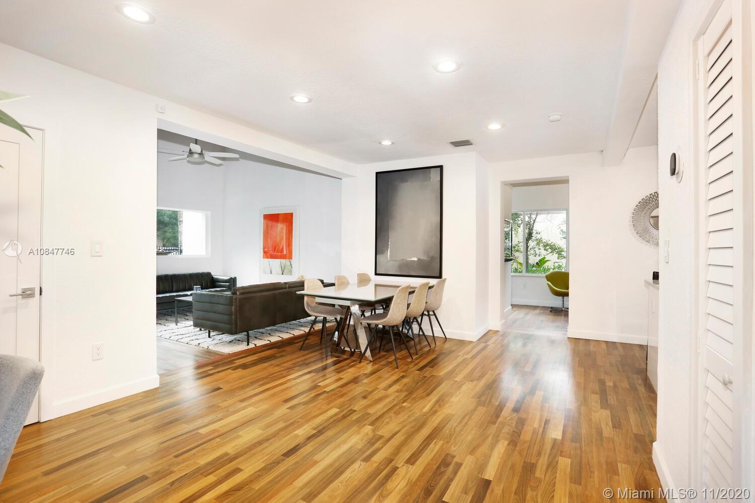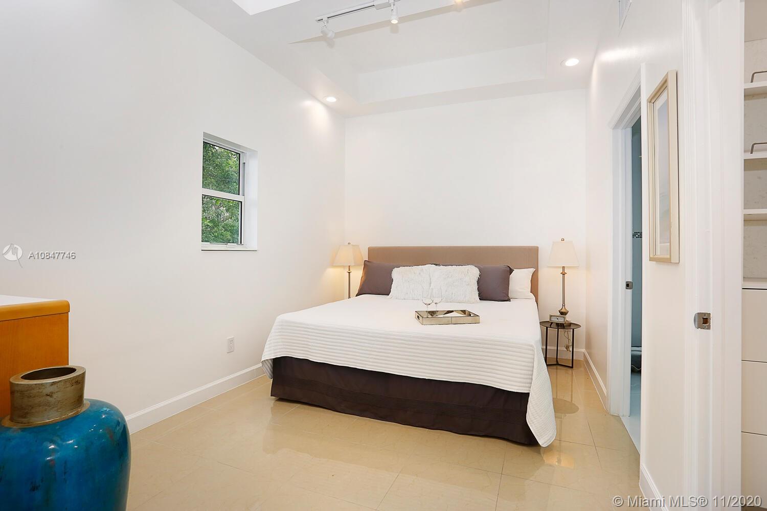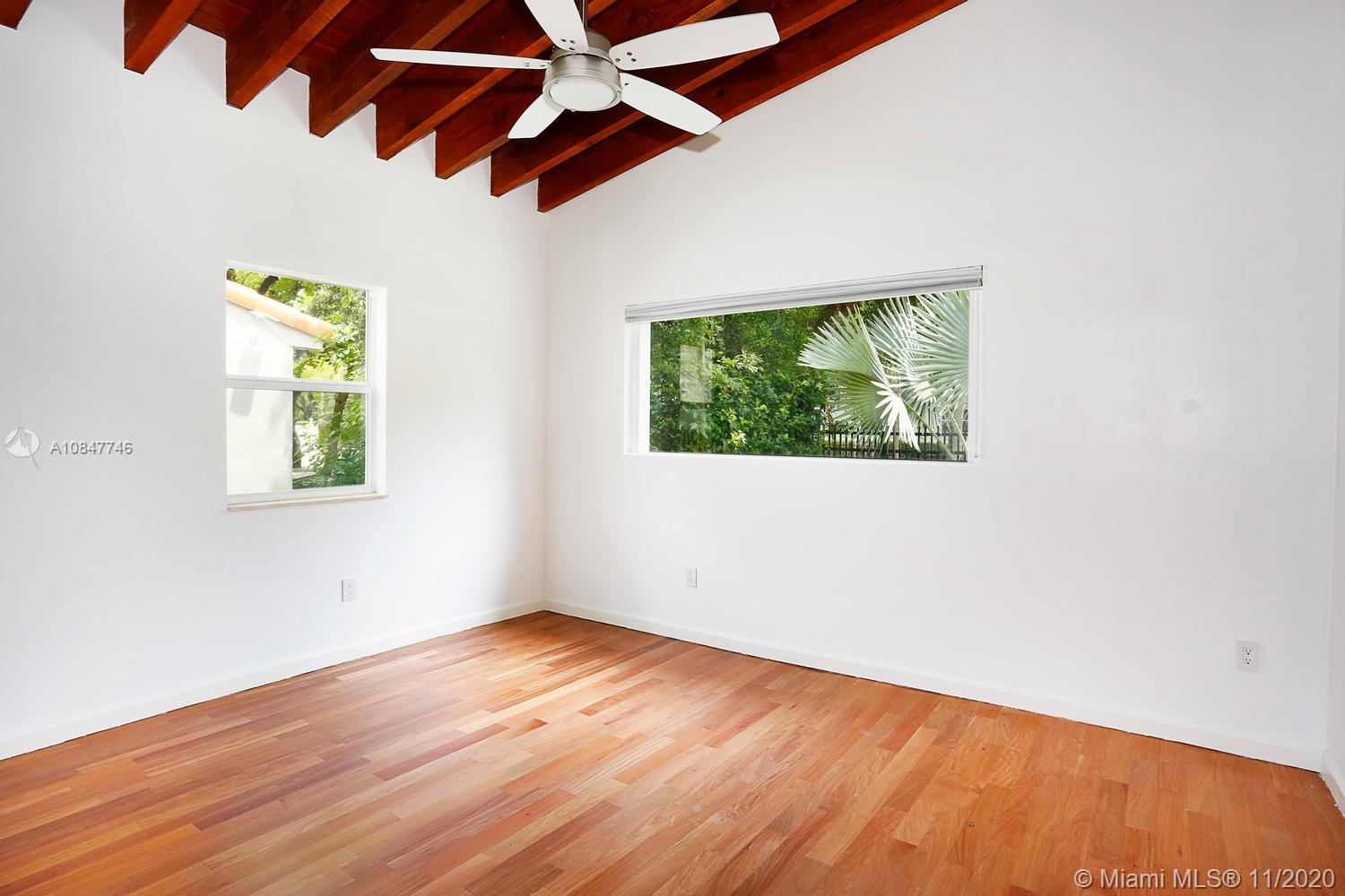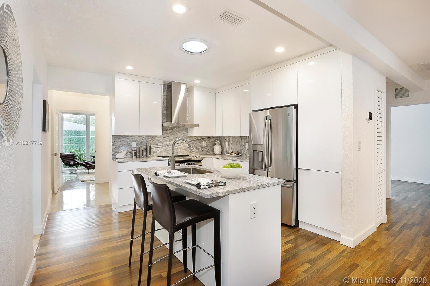 Modern-style gated home on a tree-lined street in prime North Grove location. Just a short walk to bayfront parks & marinas and close to the Grove village center’s boutiques & cafes. Recent total renovation + major addition & structural remodel in 2013. Light-filled living spaces (formal living/dining + den) with vaulted exposed beamed ceilings & wood flooring. Stunning new kitchen with center island, white high-gloss cabinetry by Eucucina, stainless GE appliances & stone countertops. 4 BR’s (1 with unique sleeping loft). Expansive master suite featuring 14’ ceilings, porcelain tile flooring, separate office/sitting area, two custom walk-in closets and spa-like bath w/jacuzzi tub. 2013- new roof /electrical /plumbing & HVAC systems. Minutes to downtown, MIA, Key Biscayne & the Beaches.