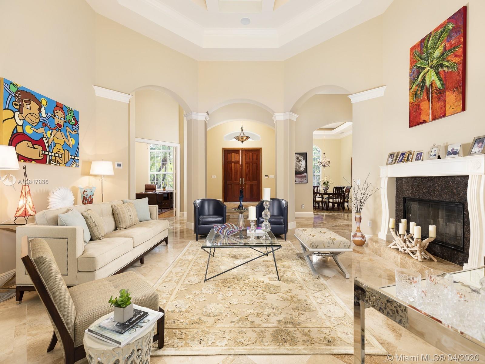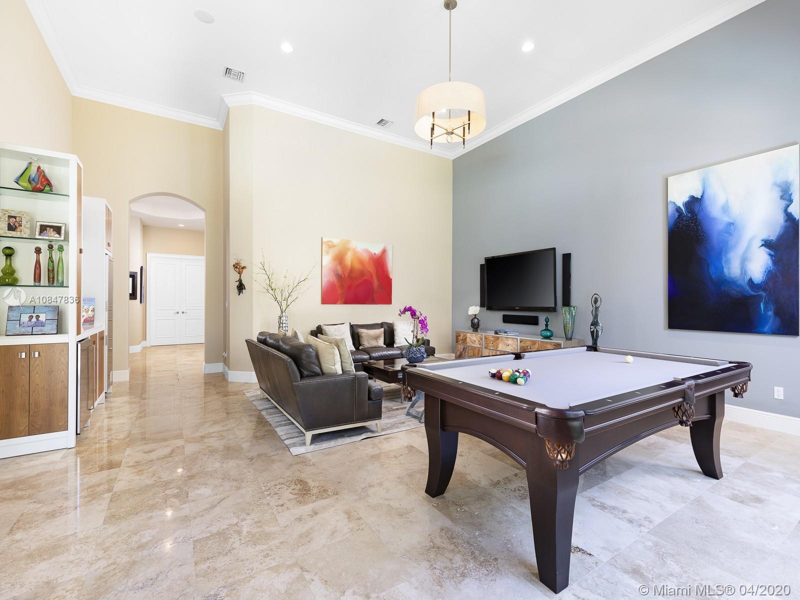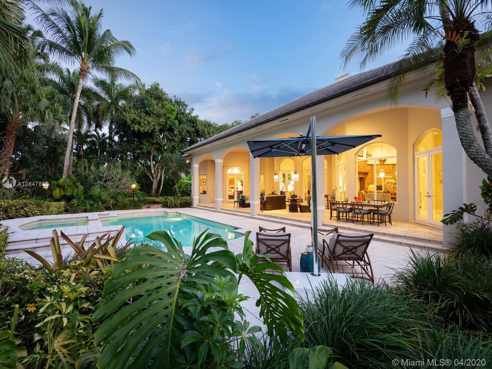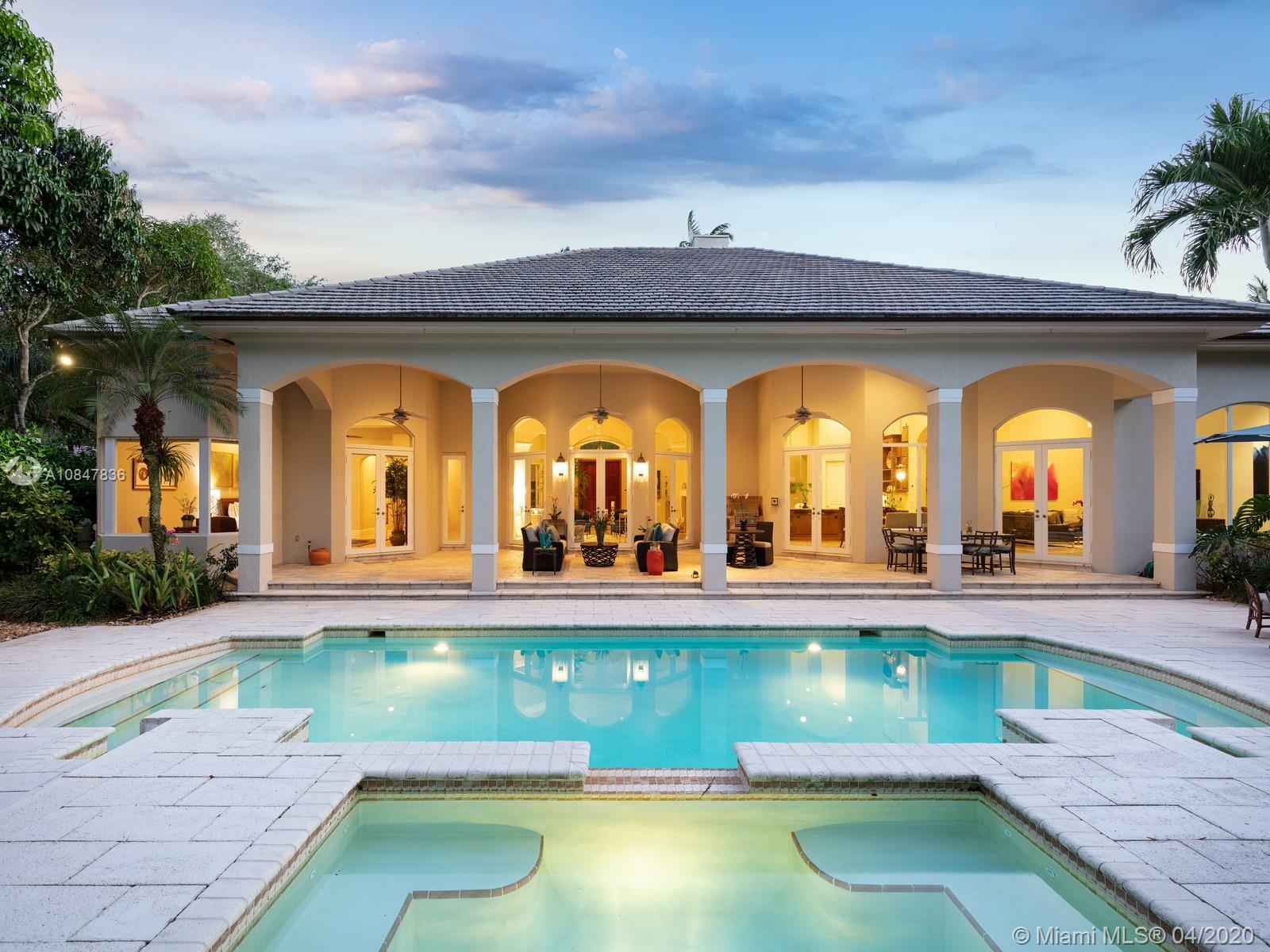 Prestigious tropical oasis in N Pinecrest, surrounded by lush landscaping & remarkable tall palm trees on an elegant circular driveway. This dazzling single-story home nestled on a 39,204 spacious lot feat. 6 bd & 5/1 br, impressive high ceilings, marble flrs throughout & expansive living areas easy for entertaining family/friends, from an airy family rm w/pool table to a custm-designed man cave for all game lovers. Captivating gourmet kit w/built-in appl & cozy breakfast nook w/serene views of outdr living areas incl an extensive covered terr for al fresco dinning & pool/Jacuzzi. Master Ste offers 2 walk-in closets, backyd access, sitting area & spa like bath. Extra feat: 3 car gar, built by Kenner Homes, surround sound, imp win/drs. VISIT OUR PROPERTY VIDEO: https://youtu.be/gTDREItaHsE