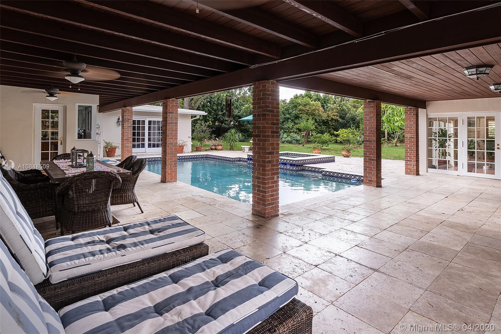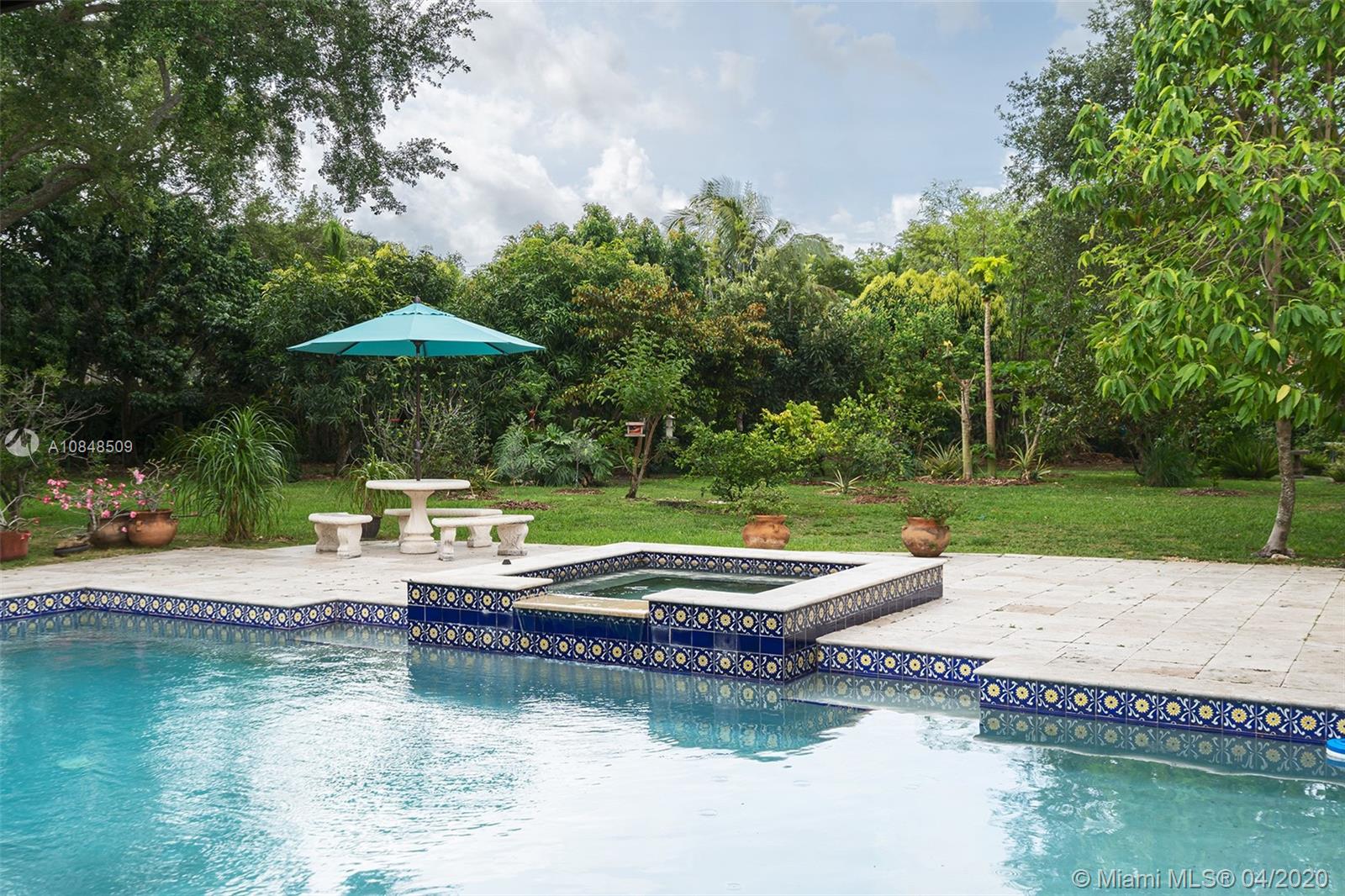 Fairchild-Inspired Pinecrest Home. Over 80 Exotic Fruit Trees. Seasonal Organic Vegetable Garden. Separate Artist studio or guest cottage (1/1) w/ 1 bed / 1 bath, sun-infused living area, plus an add'l den. Covered Patio. Sparkling Pool. Updated home (3/3) with foyer, den, LR, DR, FR. New electric, plumbing, baths, kitchen, septic, impact glass. New Roof 2016. Portuguese tile & terracotta from Spain. Acre property - fenced. Professionally landscaped by Sara. Beautiful residential street. "Tropical, with Europe's Allure". Video Open-House Tour Available.