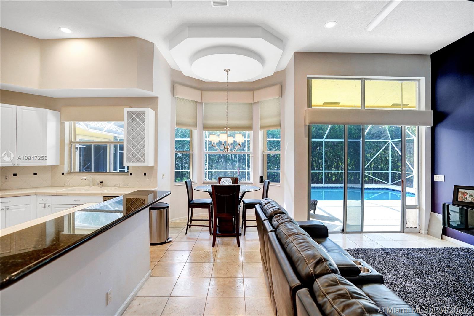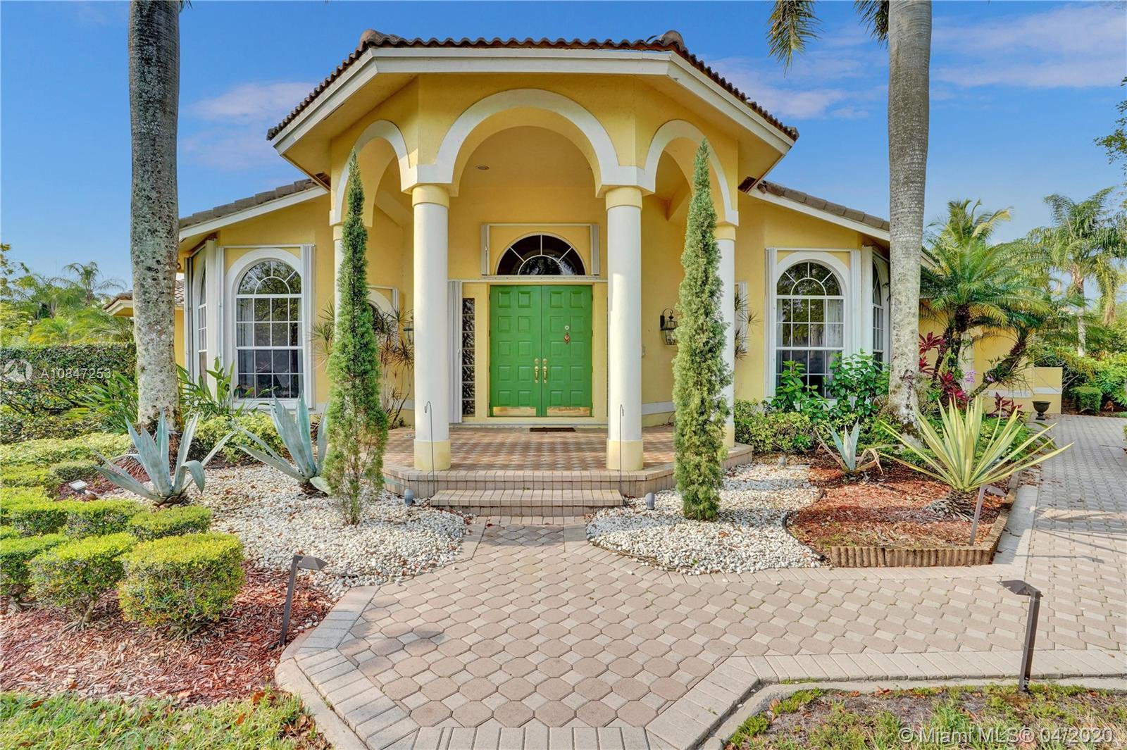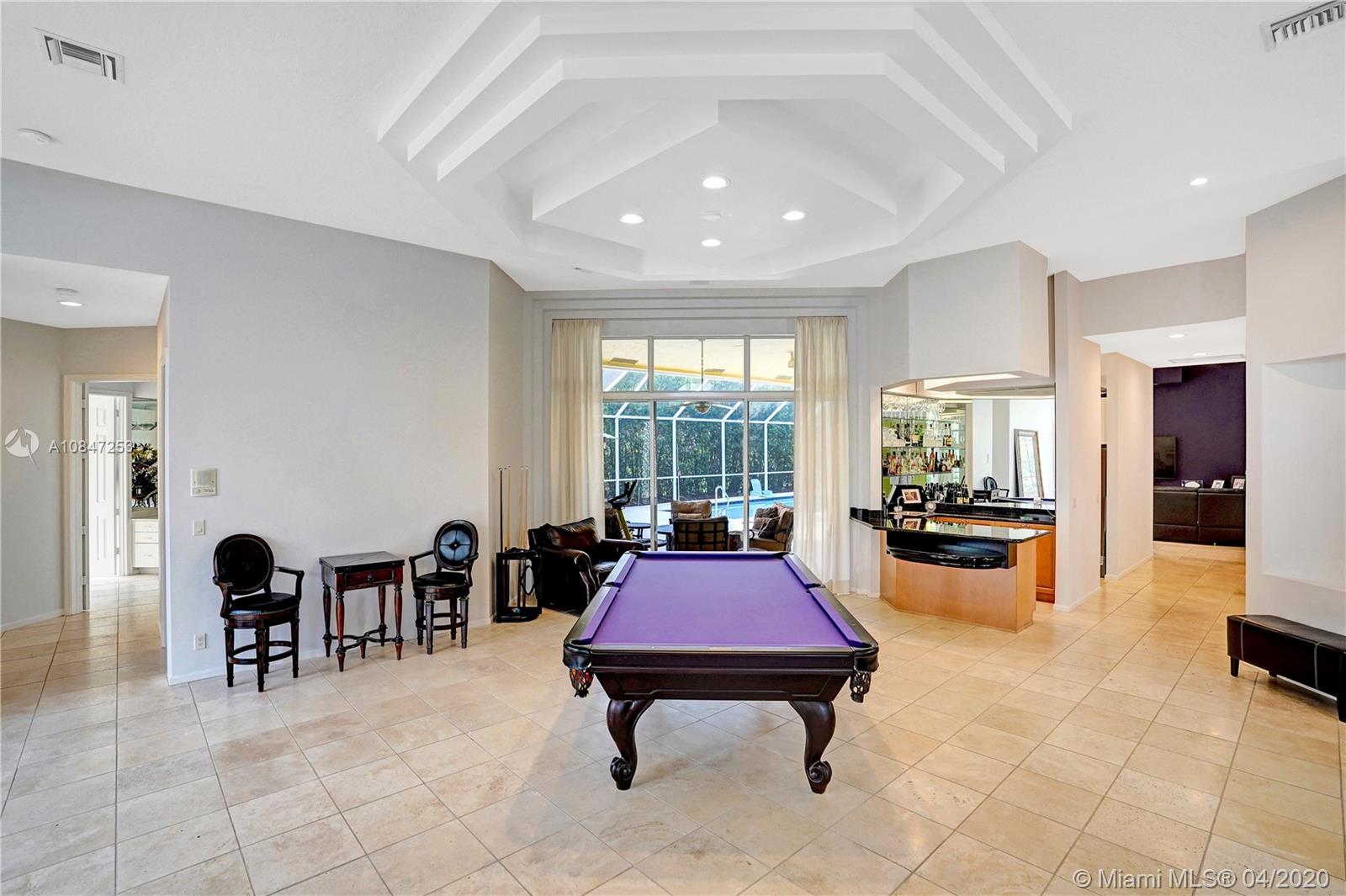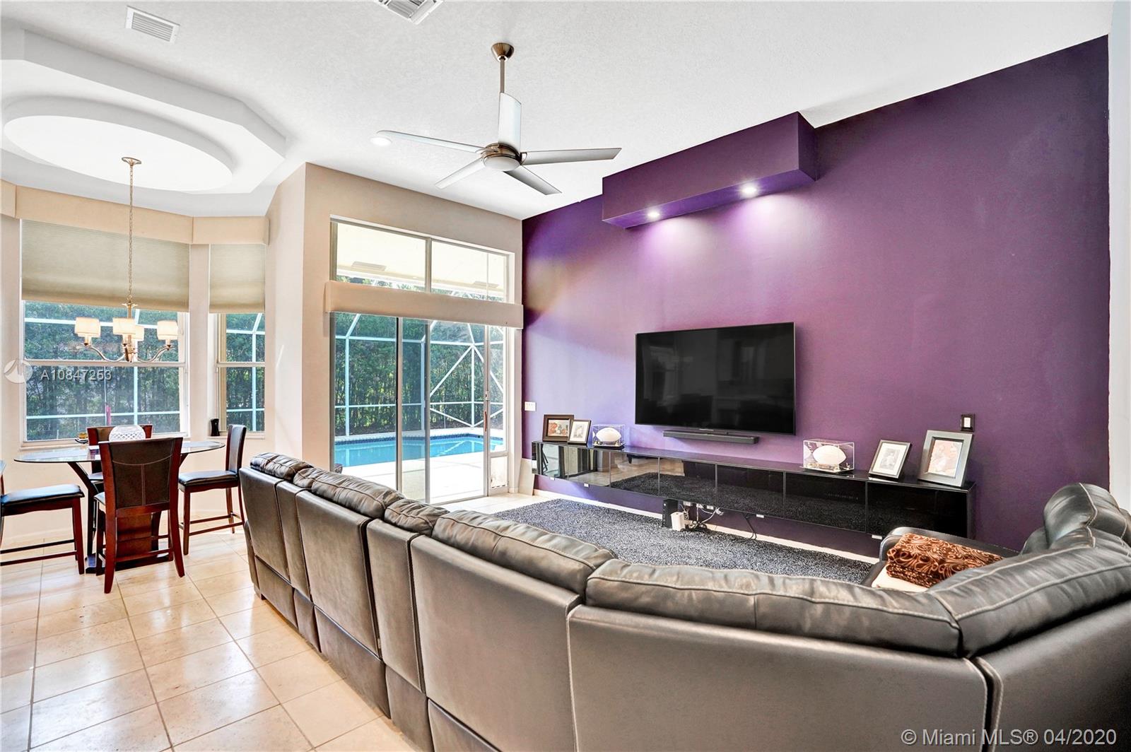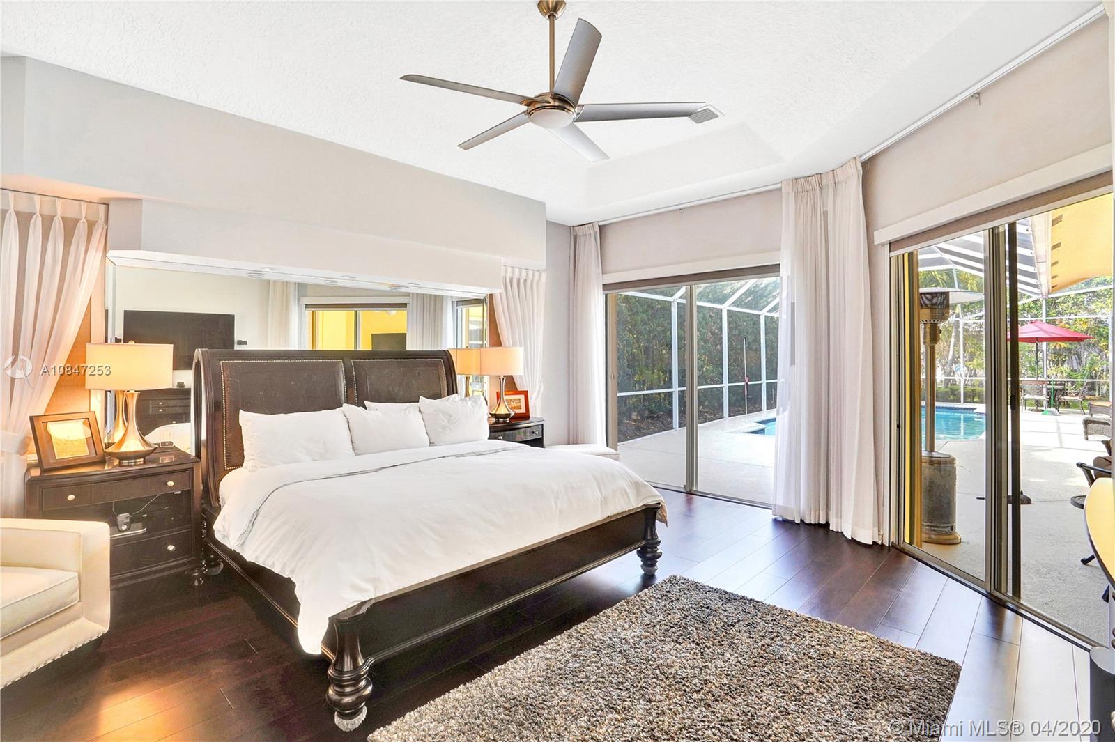 Living is easy in this impressive, generously spacious corner home with outstanding curb appeal sitting on 1/3 of an acre. This home screams pride of ownership with a grandiose entrance to a split open floor plan that encompasses four spacious bedrooms, three and a half bathrooms, three-car garage, intricate ceilings, wet bar, family room, formal dining room, and living room, second master suite with a cabana bath very convenient for younger adults and inlaws. Bamboo floors in bedrooms and ceramic tile throughout the main living area. The expansive living room opens up to a spacious and large patio for entertainment inclusive of a screened saltwater pool and private backyard for entertainment. Take action today and schedule a private showing. https://my.matterport.com/show/?m=S8WeG1eGfXi